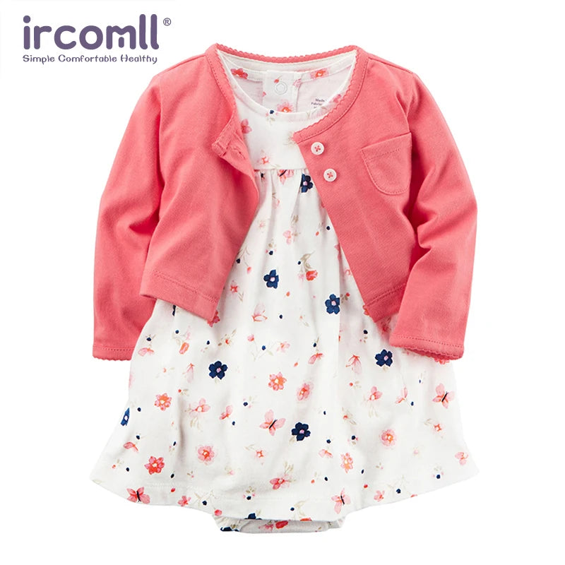 2pcs Spring Summer Infant Baby Girls Clothes Sets Toddler Dresses Long Sleeves Cardigan+Bodysuit Dress Newborn Girl Outfit
