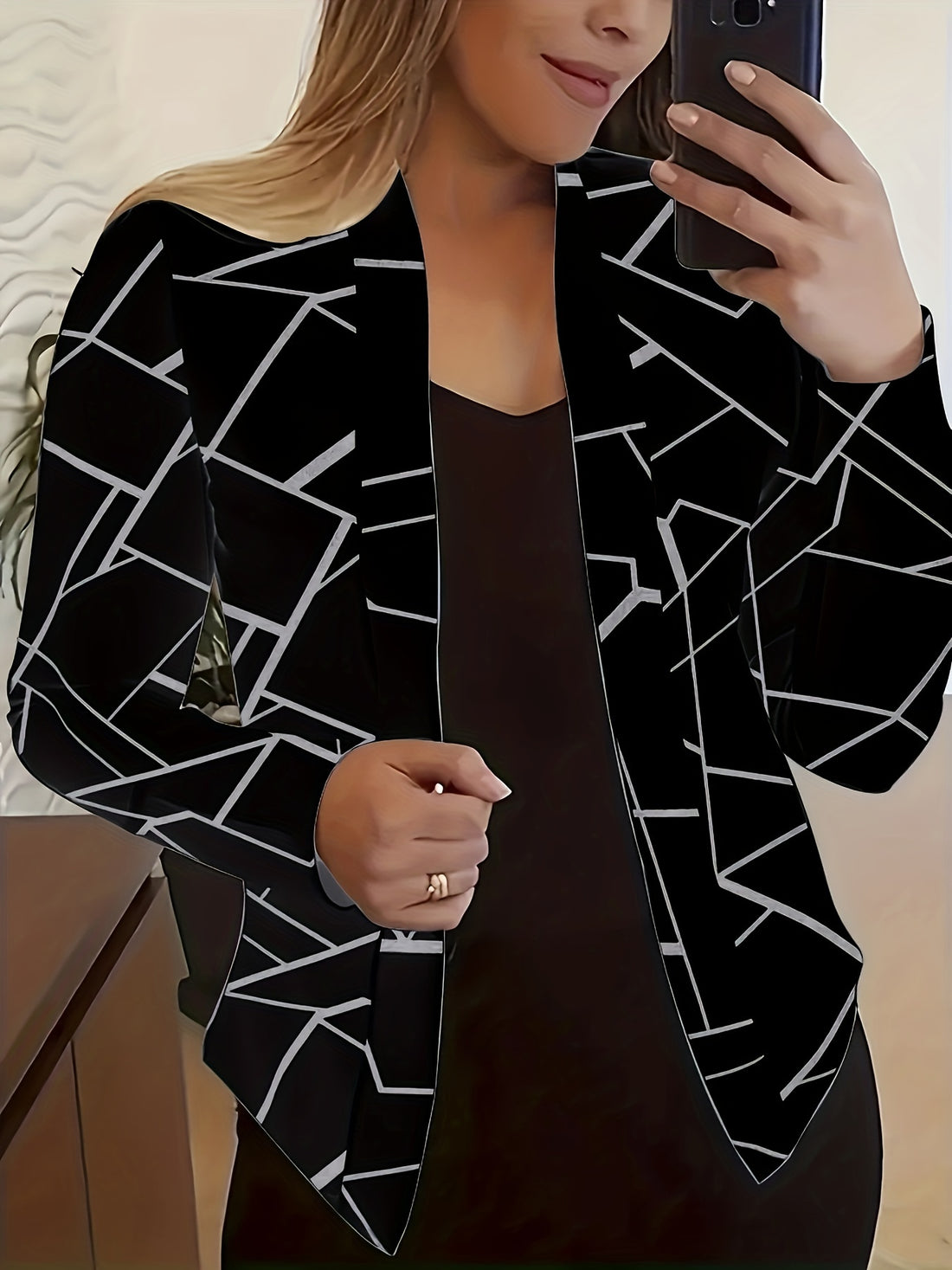 Geo Print Open Front Blazer, Casual Long Sleeve Outwear,