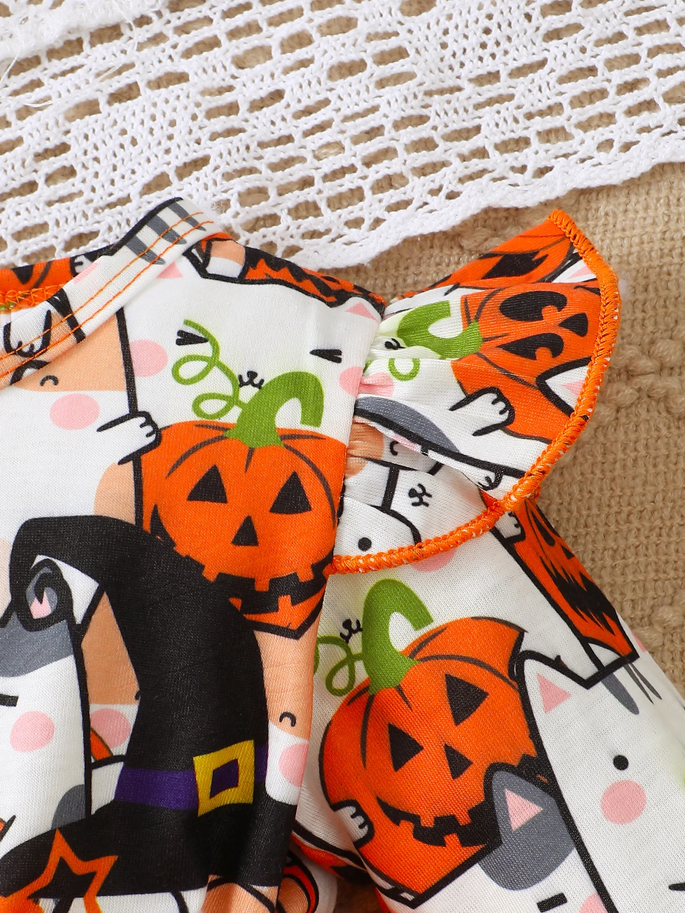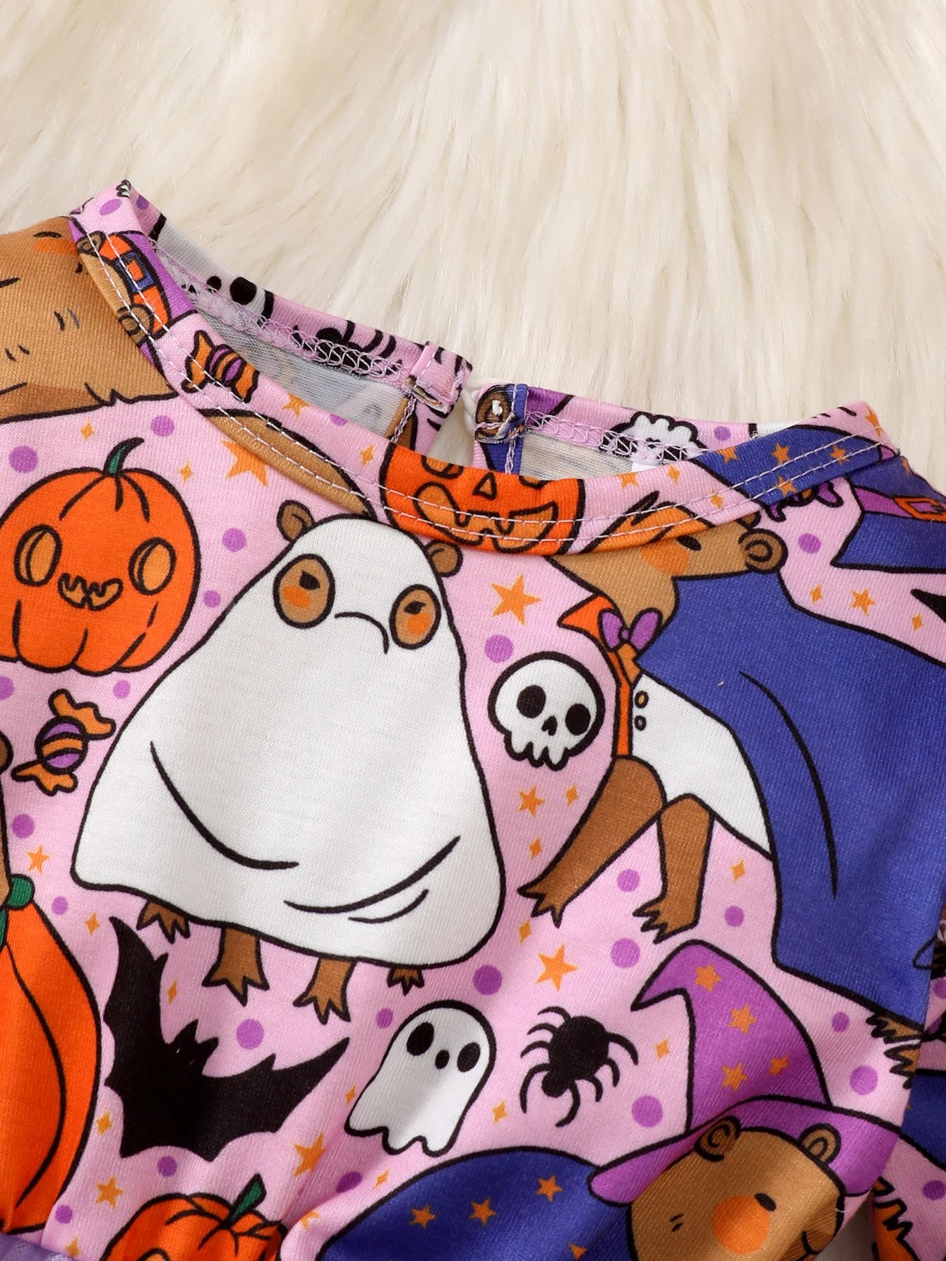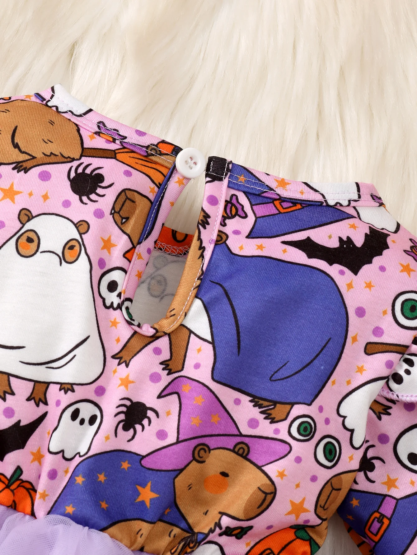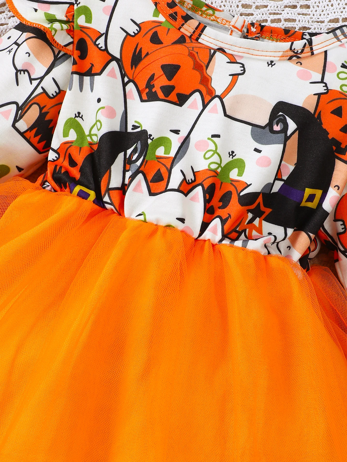 0-3 Year old Children's Girl Dress Round neck Cartoon Halloween Element Tulle Long sleeved Dress Girl Halloween Party Dress