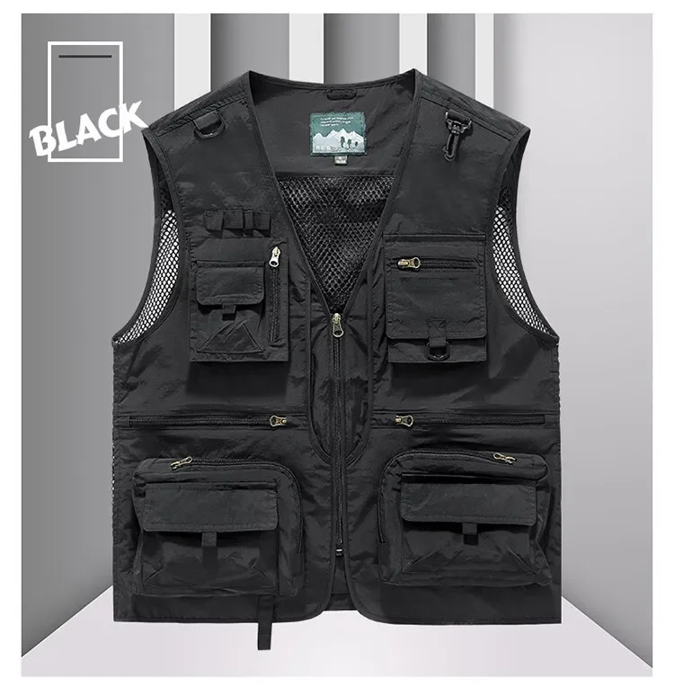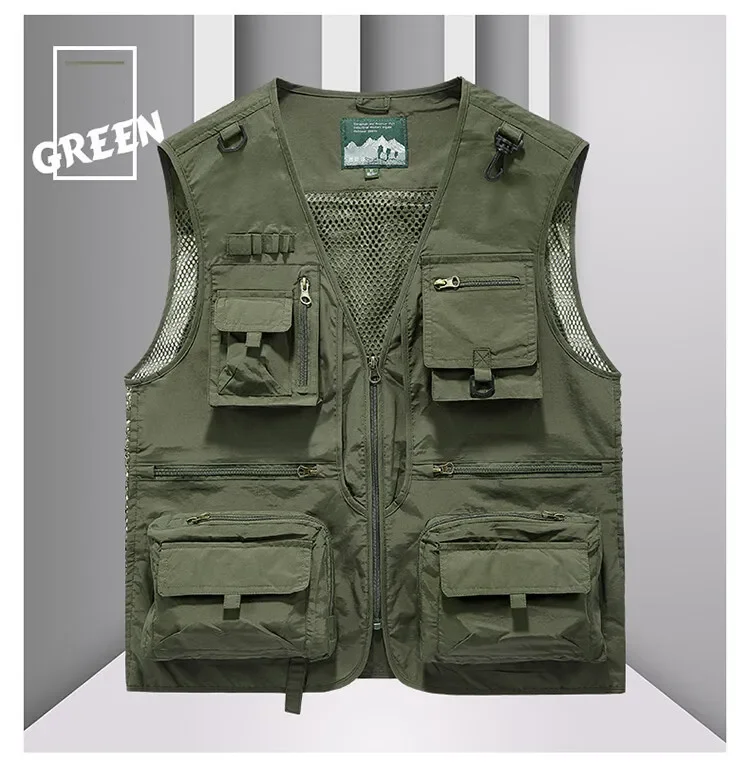 14 Pockets Summer New Men US Tactical Hiking Fishing Vest Mens Photographer Waistcoat Mesh Cargo Sleeveless Jacket Tool Vest 5XL