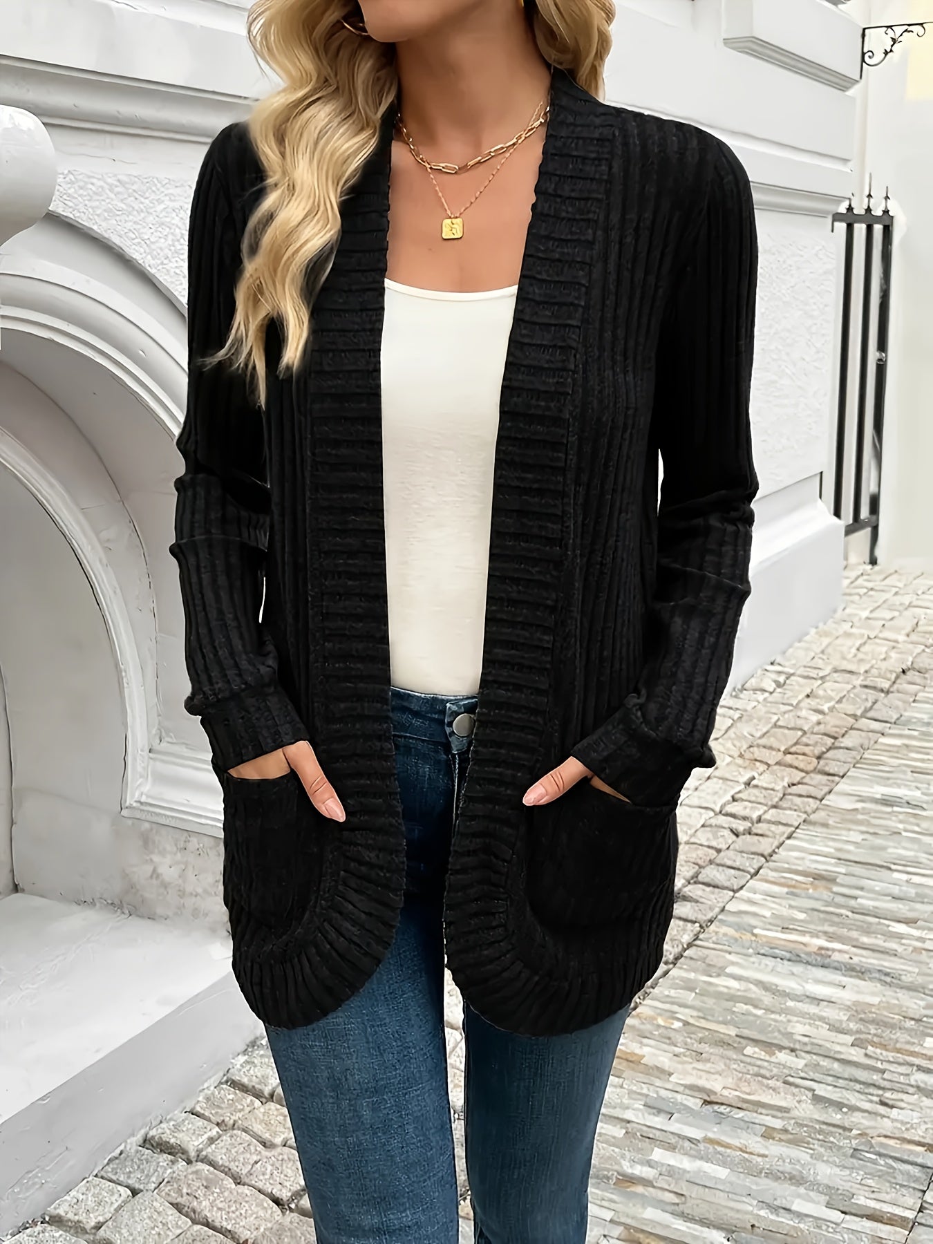 1pc Women'S Solid Color Polyester Cardigan Jacket with Pockets,
