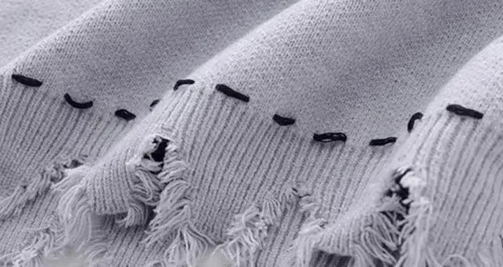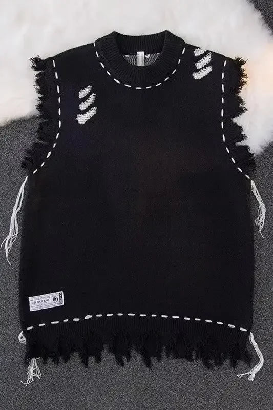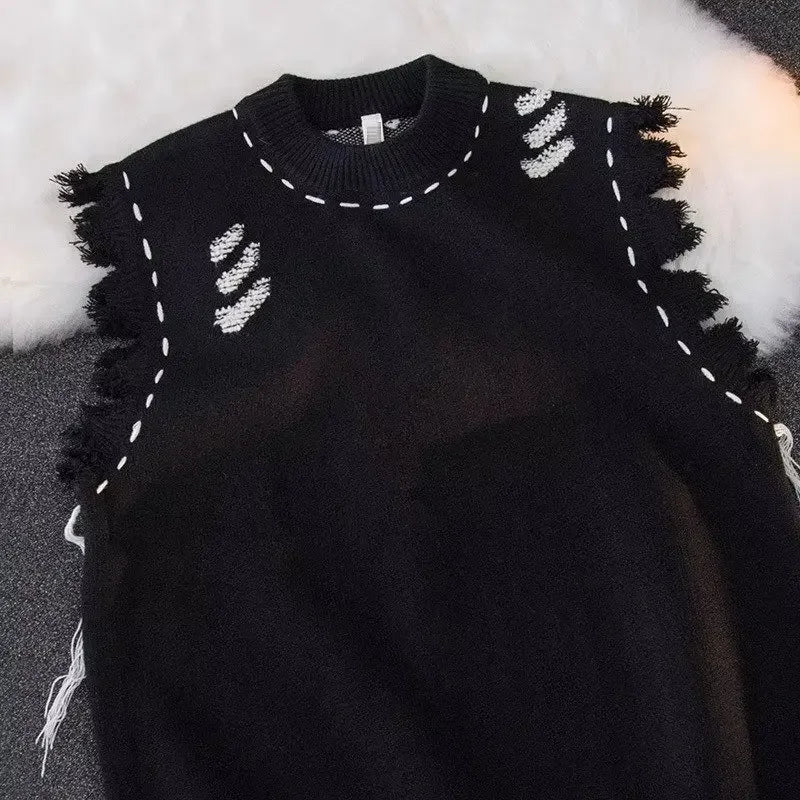 2023 Autumn New Men's Fringe Vest Sweater American Style Street Destructive Sense Round Neck Knitted Top Jacket Casual Scene
