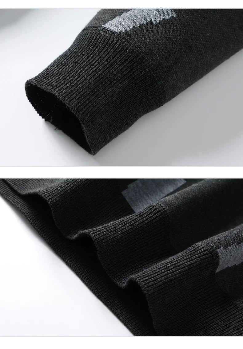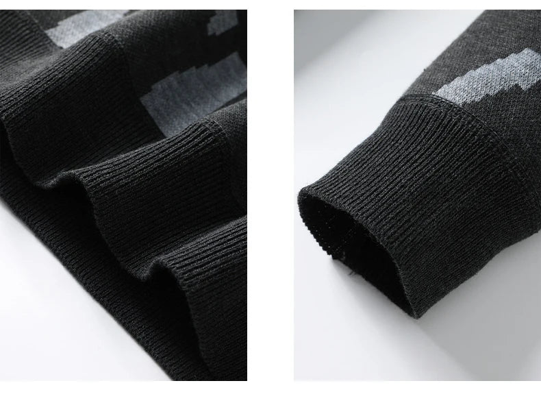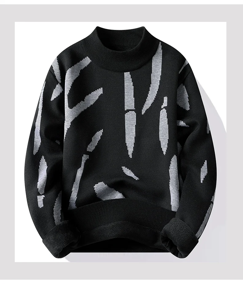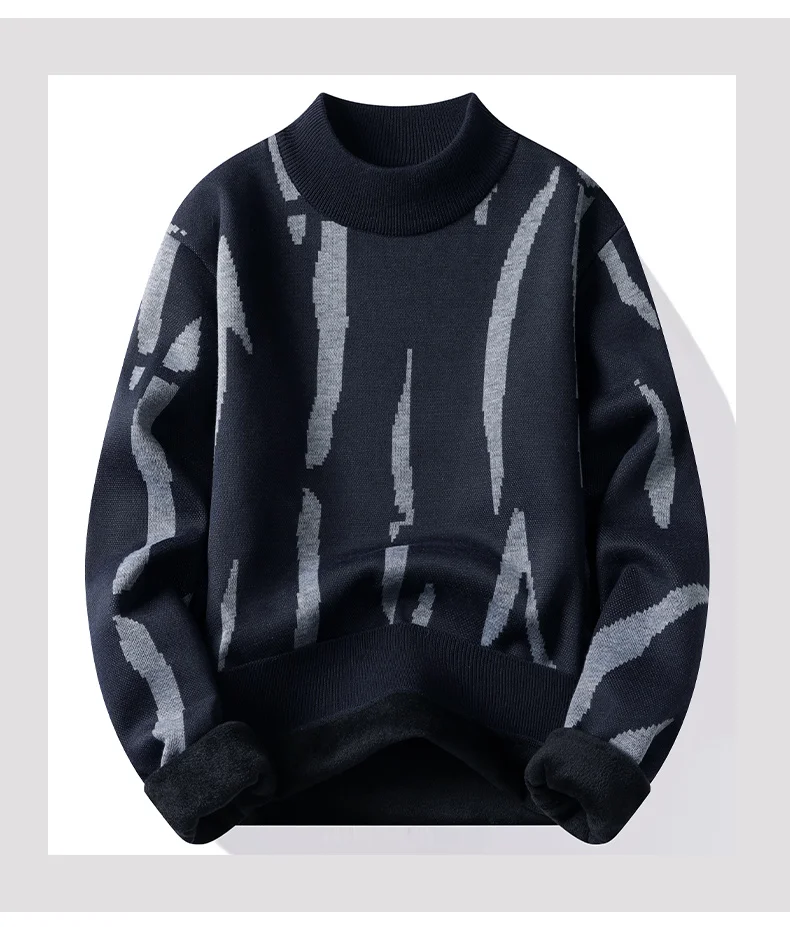 2024 M-4XL Autumn/Winter New Men's Sweater Half High Collar Zebra Pattern Color Blocked Velvet Knitted Sweater Warm Hoodie Top
