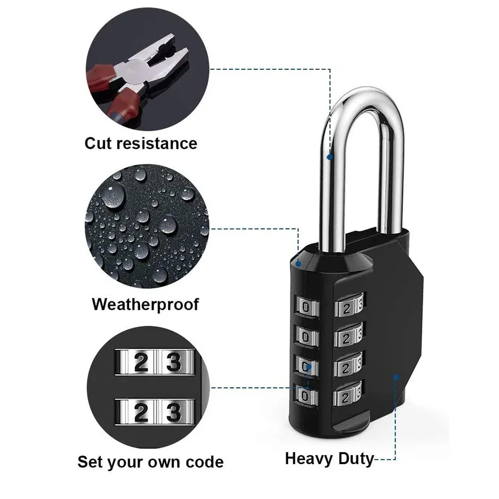 2pcs Combination Lock Resettable 4 Digit Padlock Combination Waterproof.