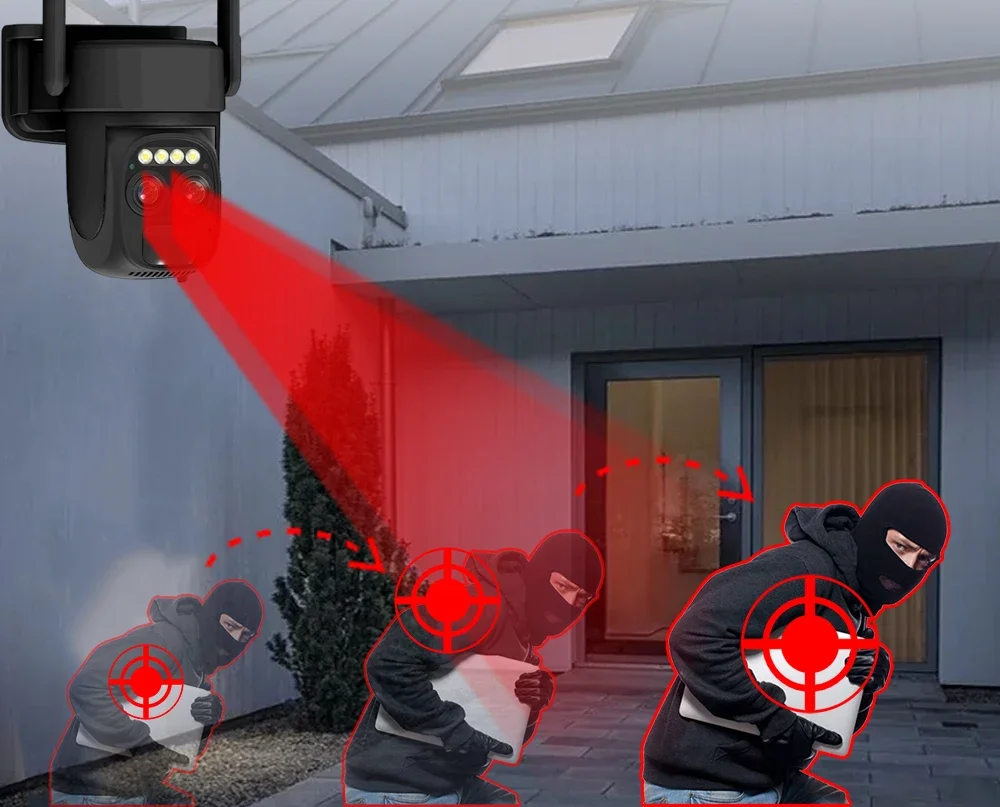 When someone passes through the alarm area, the camera will detect the person's movement. And track people.