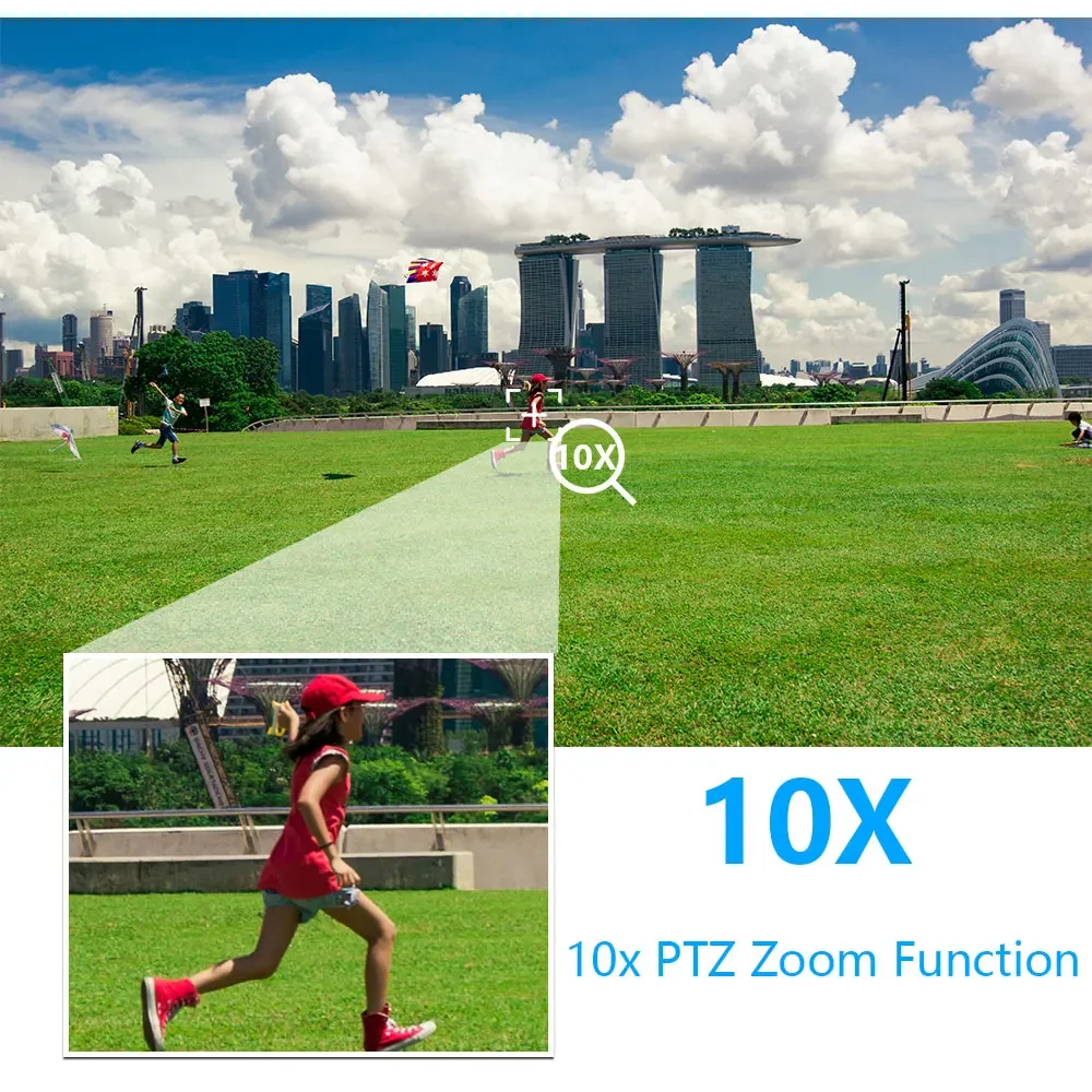 4K 8MP Dual Lens WIFI Solar Pane Camera Outdoor 10X Optical Zoom .