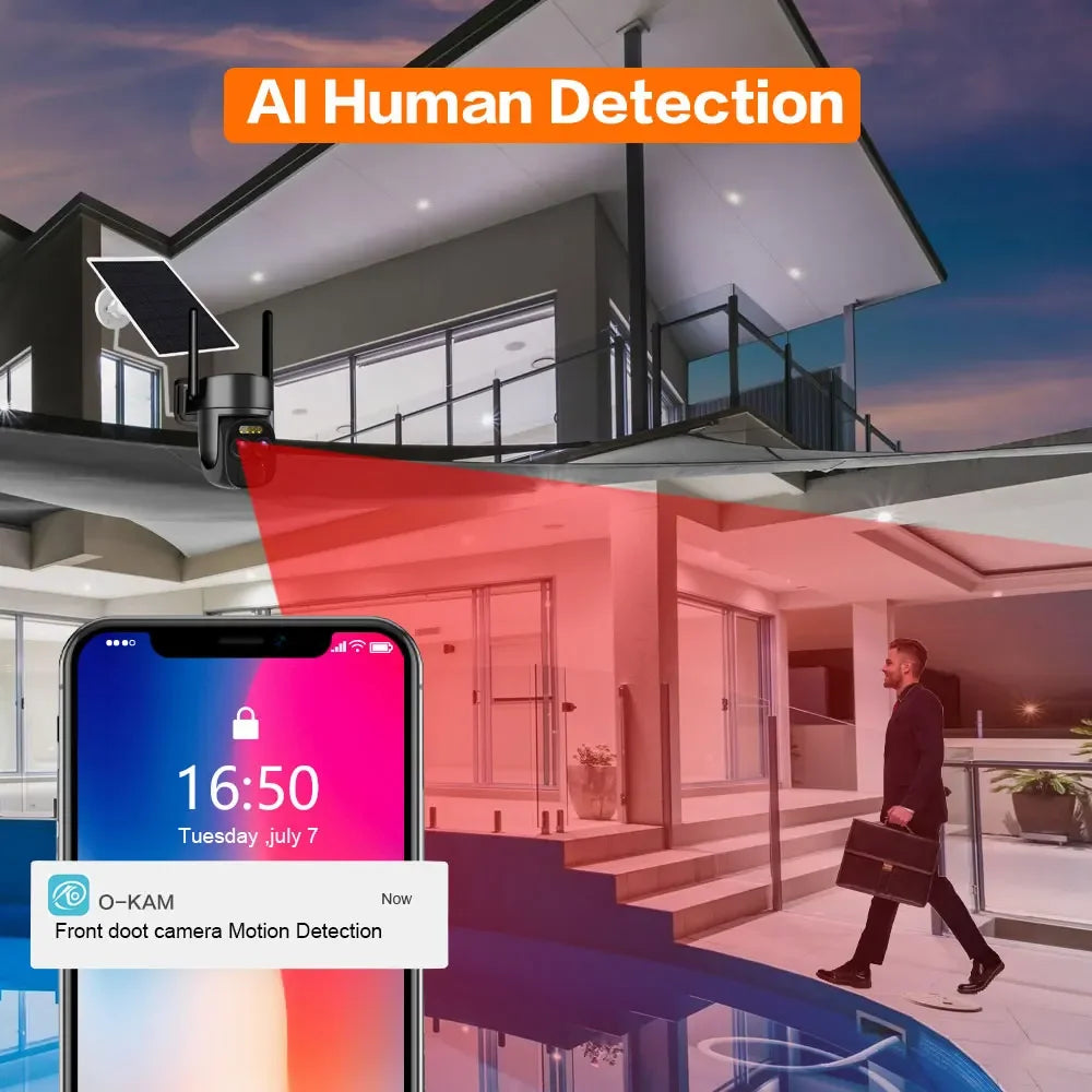 10X Zoom Dual Lens WIFI Solar Cameras 8MP Wireless Surveillance PTZ Battery Camera 4K Color Night Vision Two Way Audio O-KAM APP