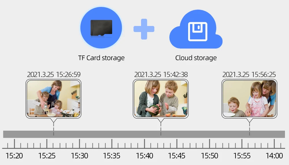 The camera supports up to 128GB TF card local backup and also provides cloud storage service(Need to pay extra cost)