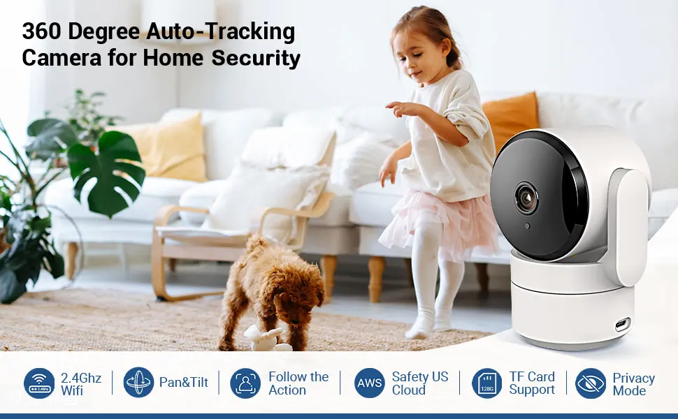 AMOROM 2K Indoor Camera 5/2.4G Wi-Fi Home Night Vision Security Camera.