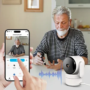 AMOROM indoor camera with audio provides you with faster and more stable connection, and supports both 5GHz and 2.4GHz wifi bands, providing you with more high-definition images and clearer calls, so that you can say goodbye to the trouble of disconnection. wifi camera indoor compatible with Alexa and Google.