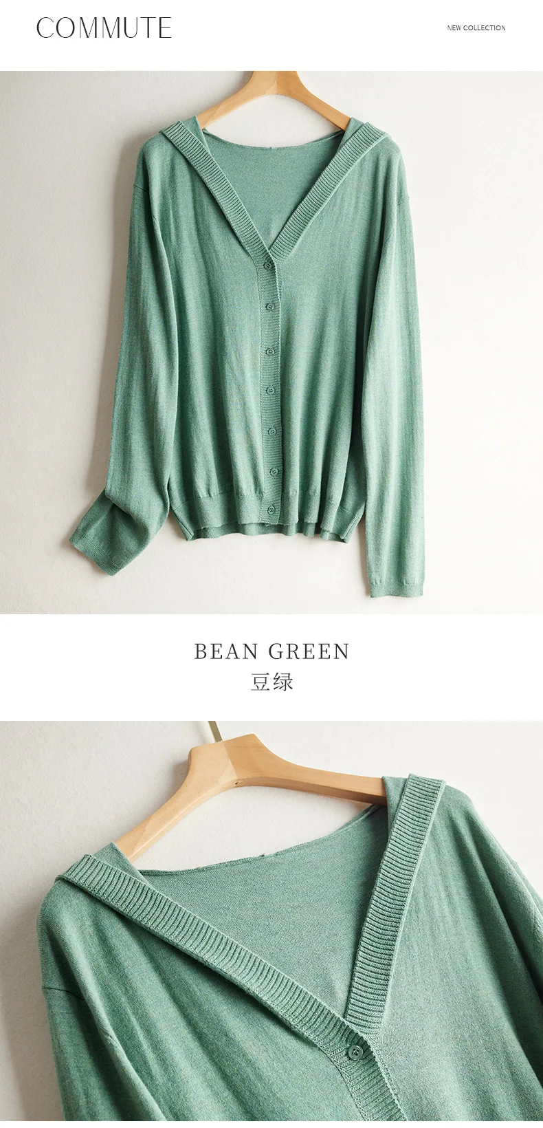 Birdtree 63.9% Silk Cashmere Blended Cardigan Hooded Loose Long Sleeve Knitted Coat Solid Casual Women's Top Autumn New