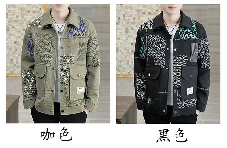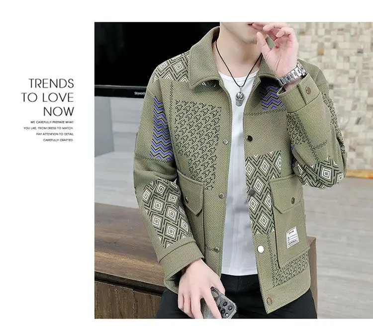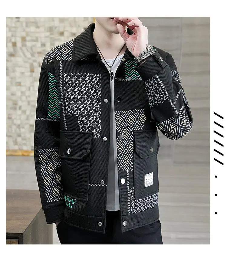 Brand Clothing Spring Autumn Men Coats Lapel Slim Print Jacket.