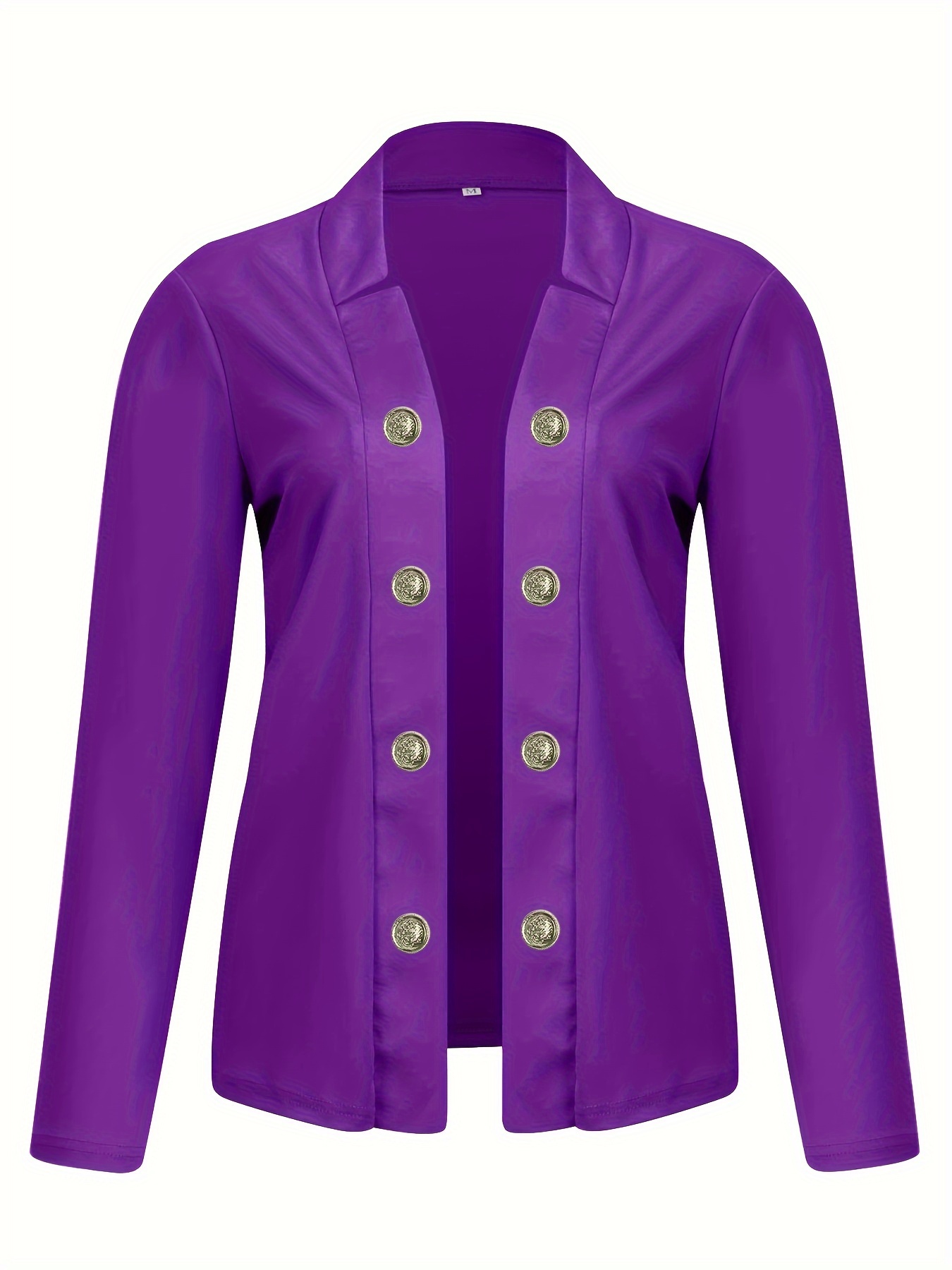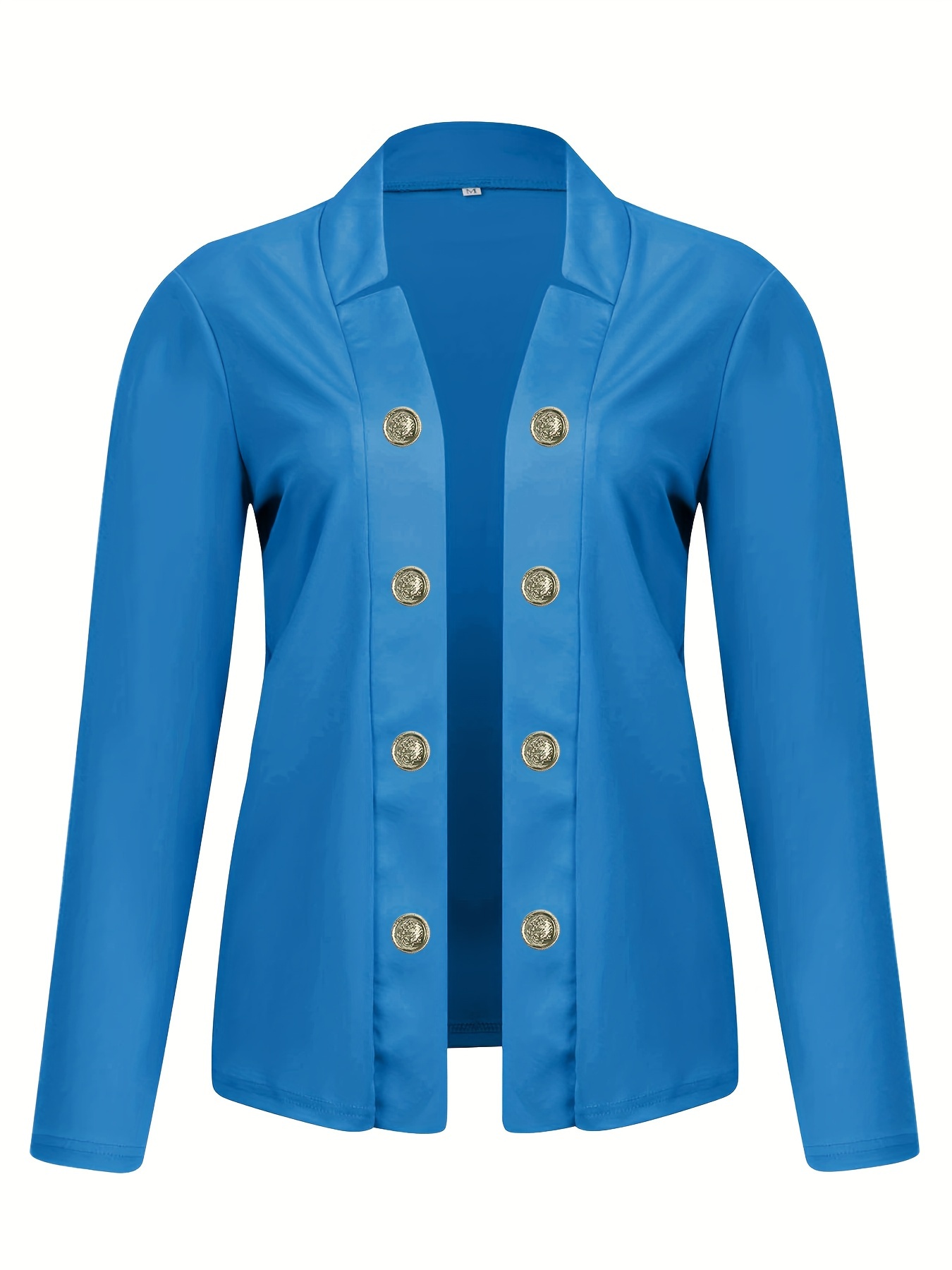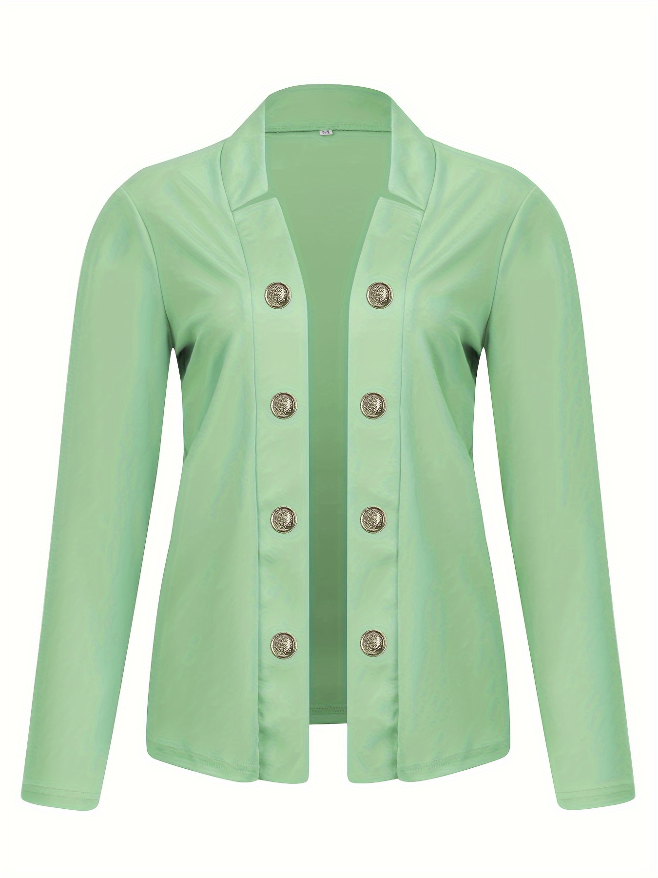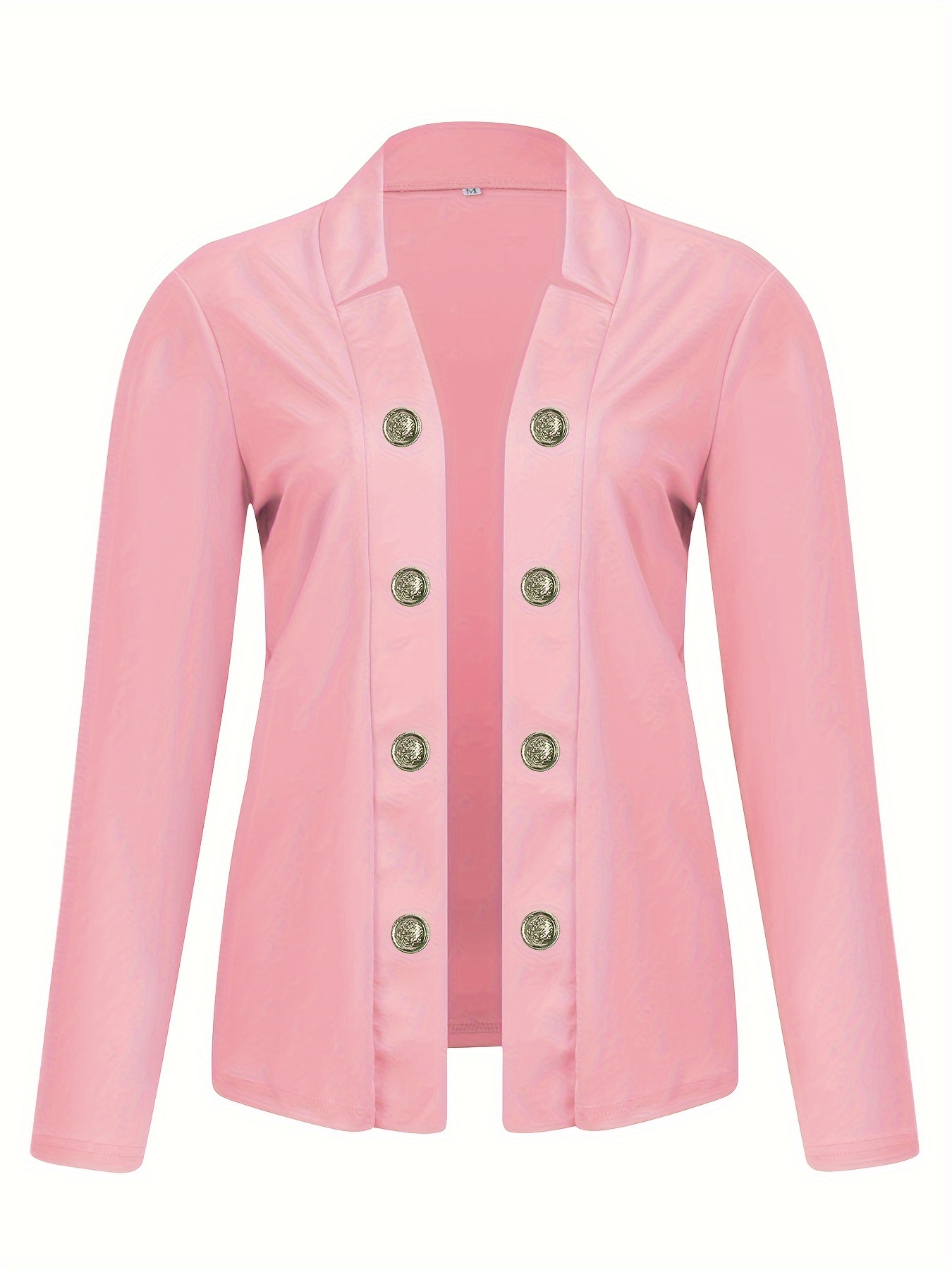 Button Decor Open Front Blazer, Casual Long Sleeve.