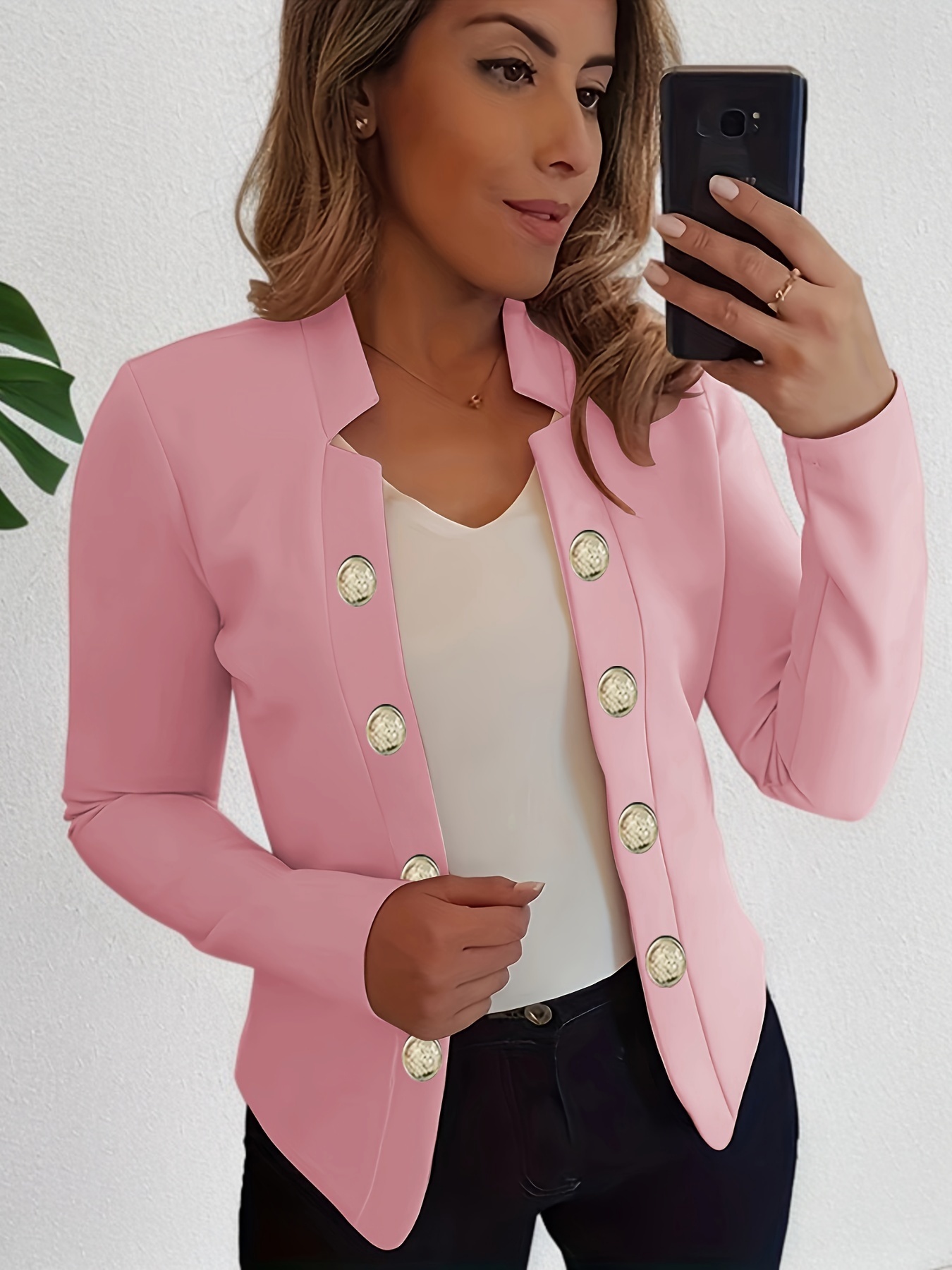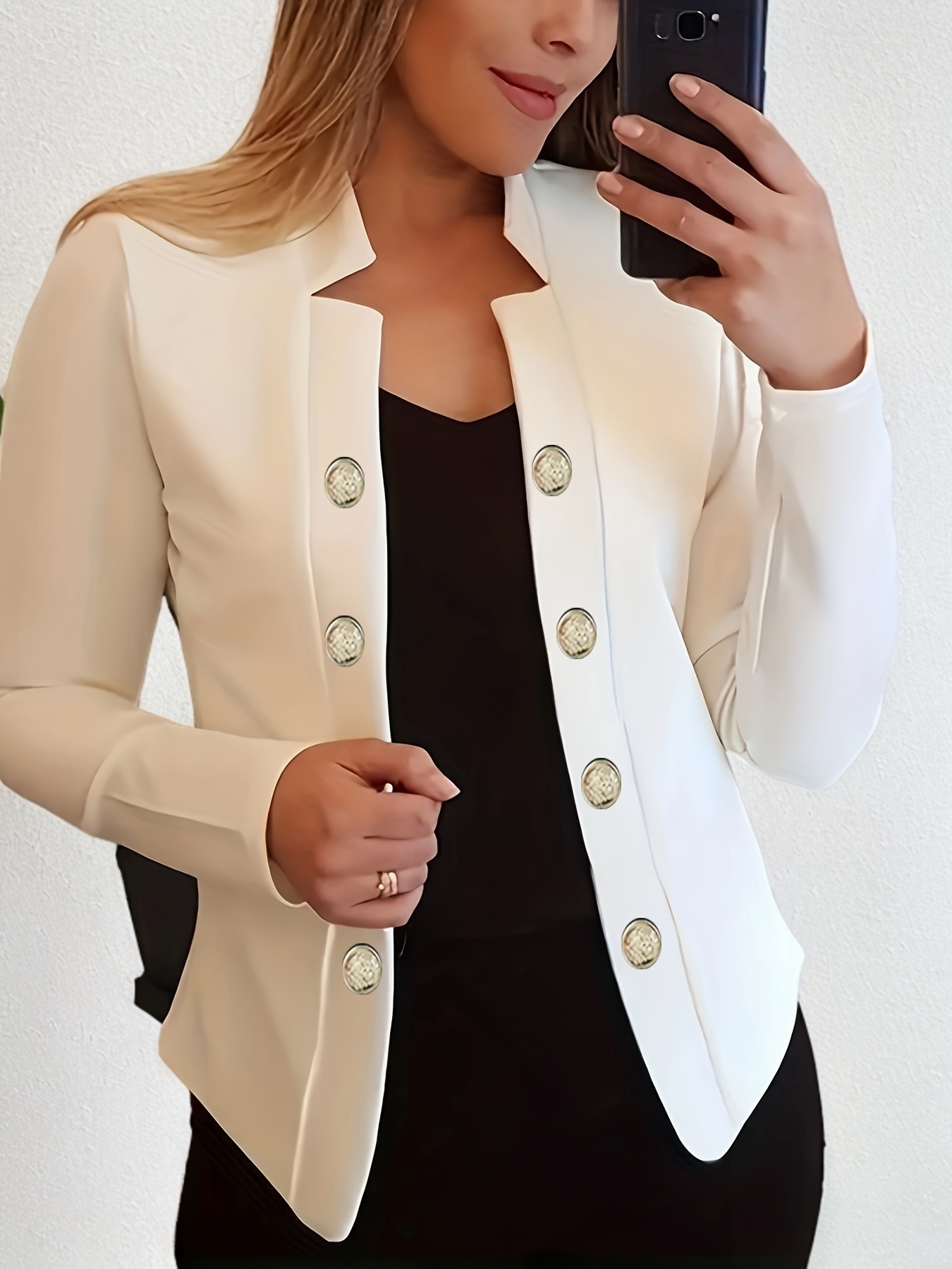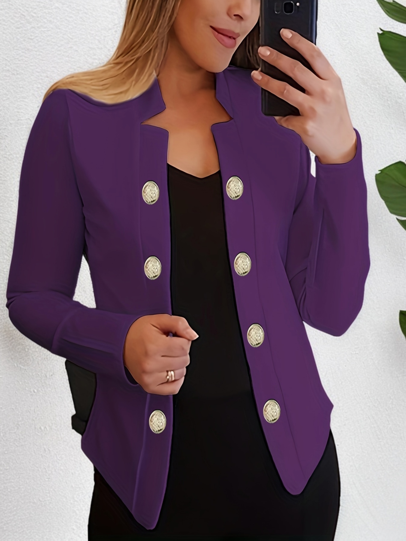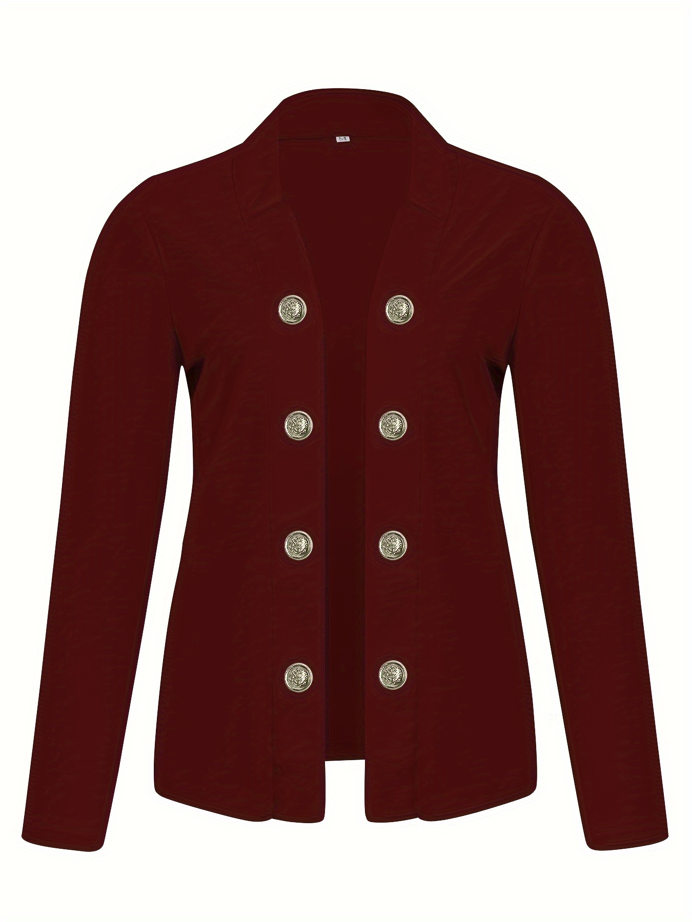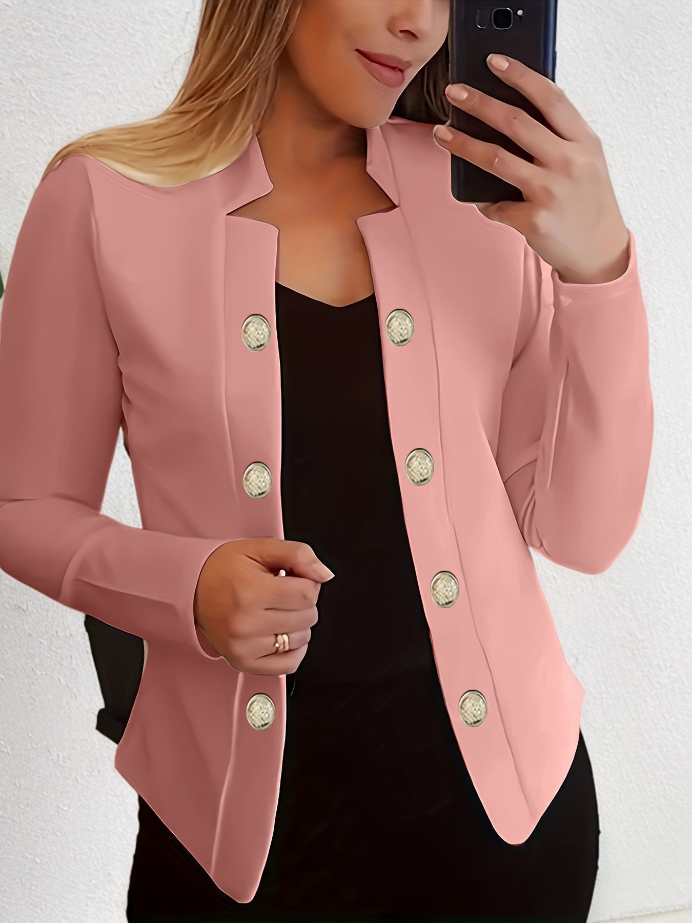 Button Decor Open Front Blazer, Casual Long Sleeve.