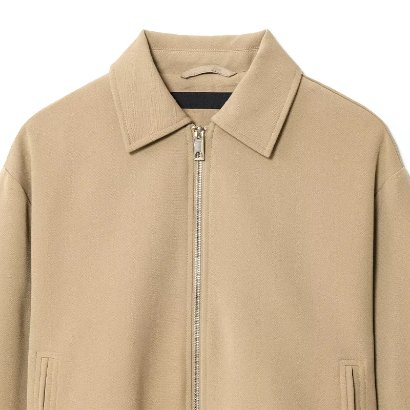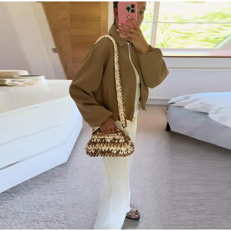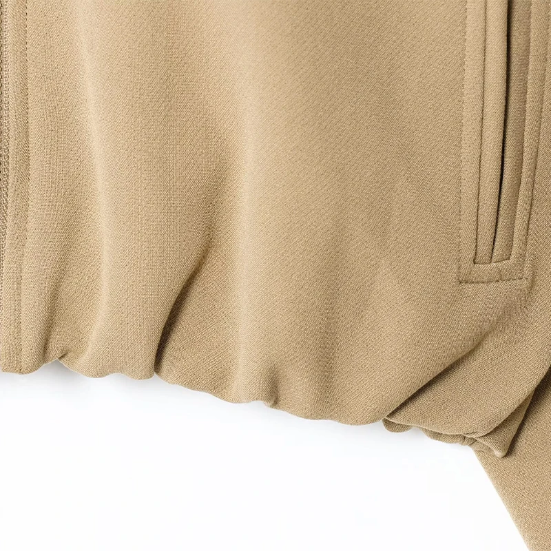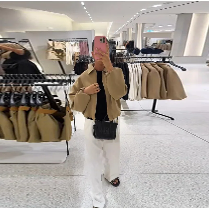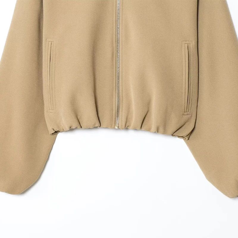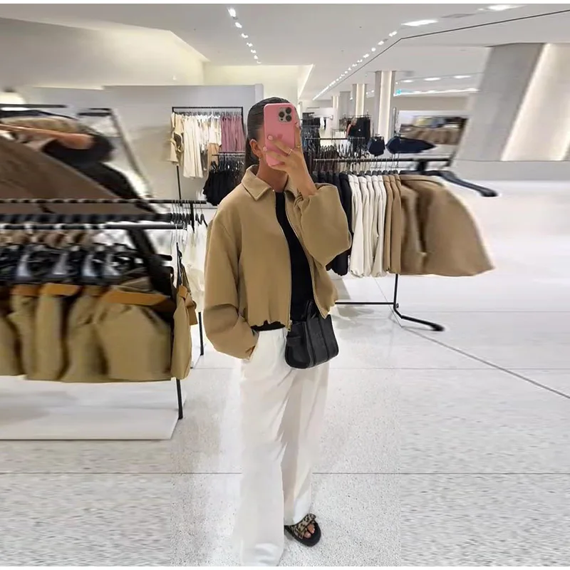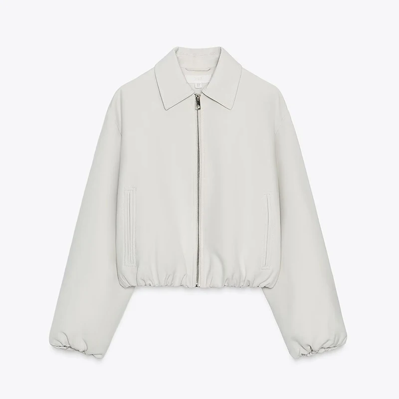 Casual Solid Zipper Lapel Short Jacket Women Long Sleeve .