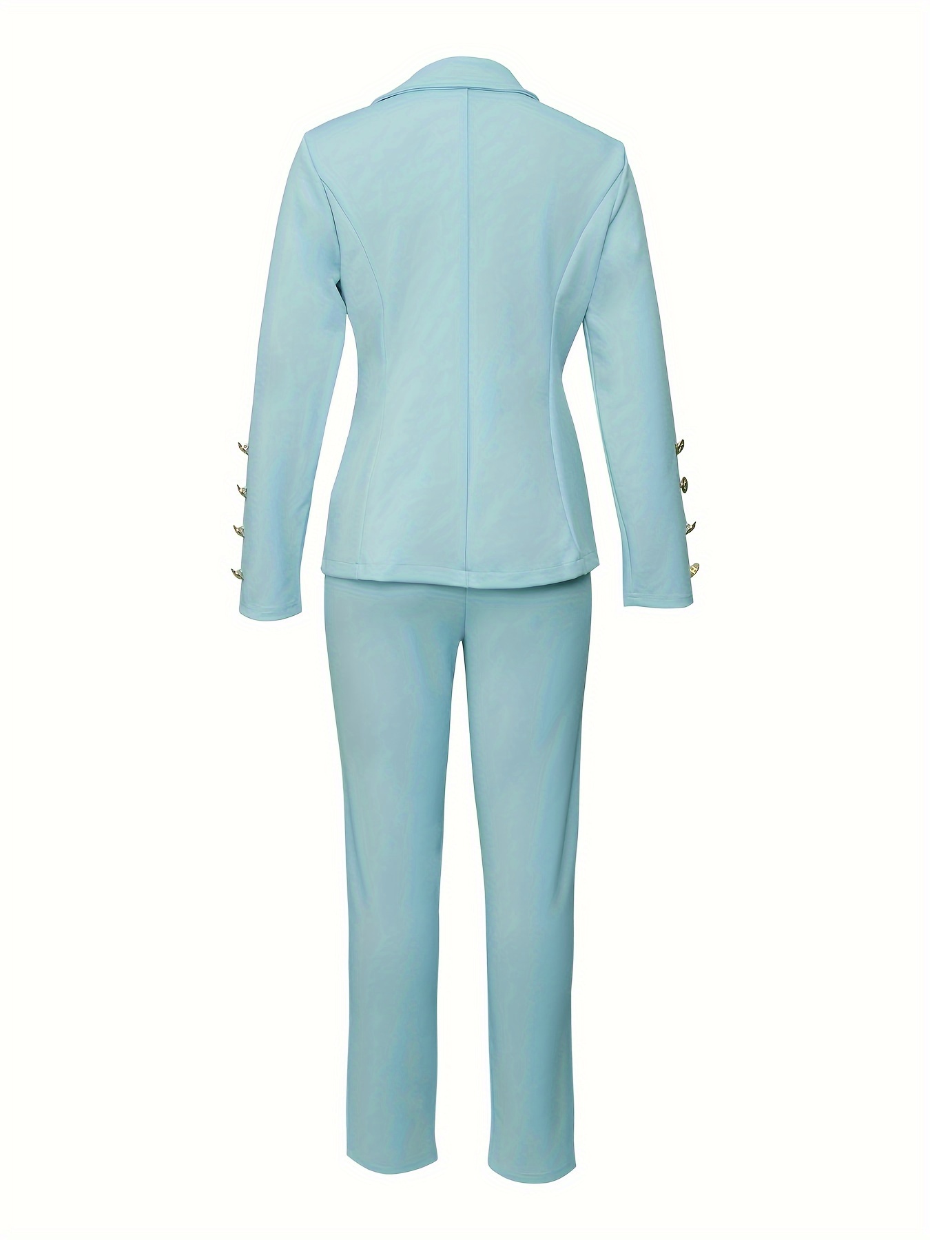 Elegant Solid Color Pants Suit, Double-breasted Long Sleeve.