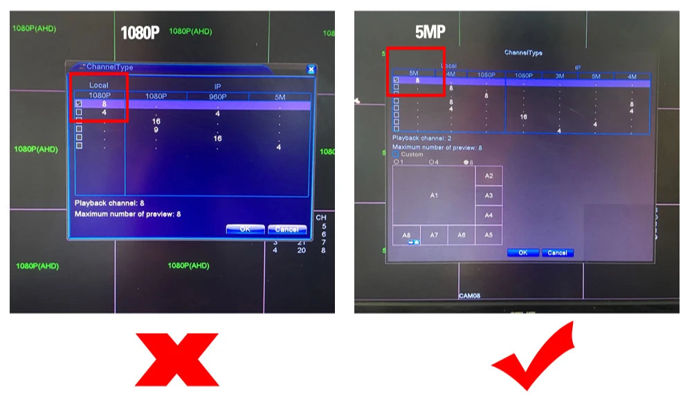 ” AHD DVR “or "Common DVR" ,The 5MP AHD Camera Not Work!!!