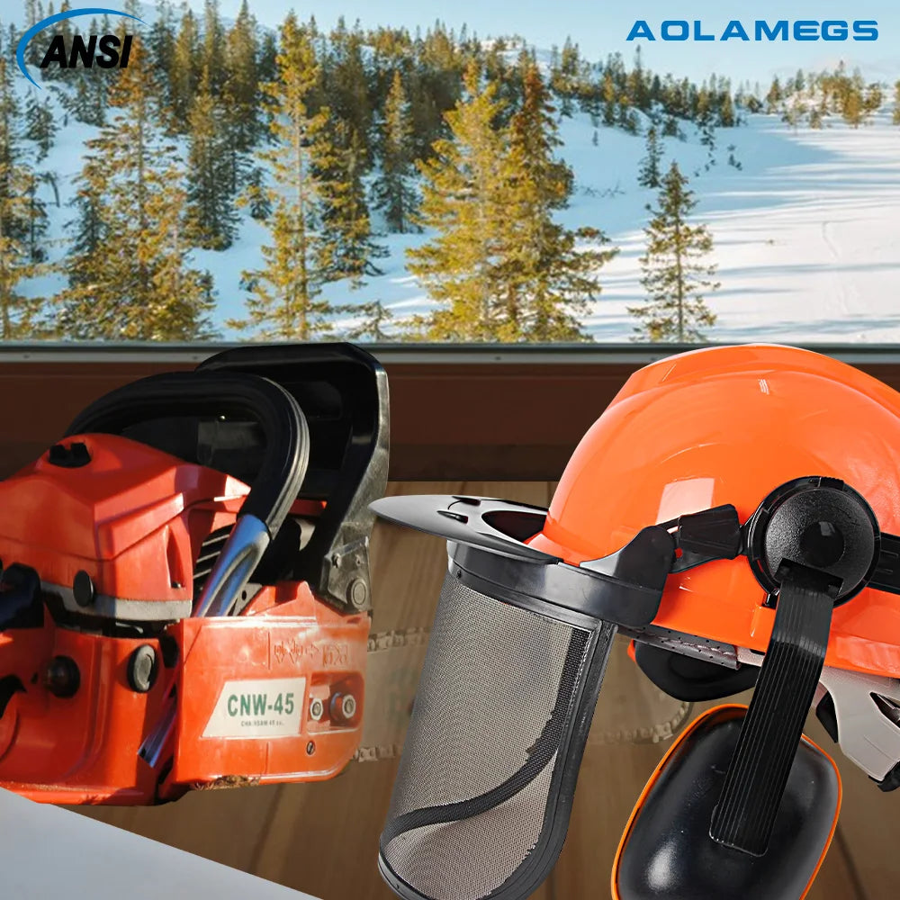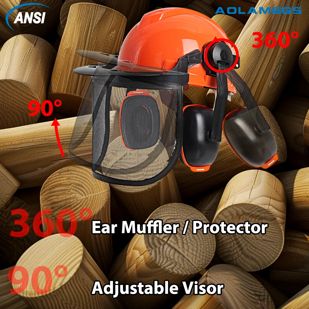 【SAFETY HELMET WITH EYE AND EAR PROTECTION】 This all-in-one forestry helmet comes with a hard hat, an adjustable metal mesh visor. Great for an arborist, lumberjack, logger or forestry professional looking for new tree cutting equipment or safety headgear.