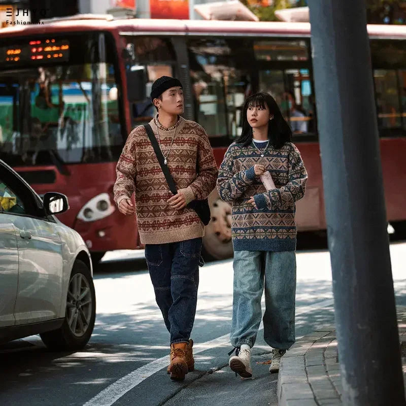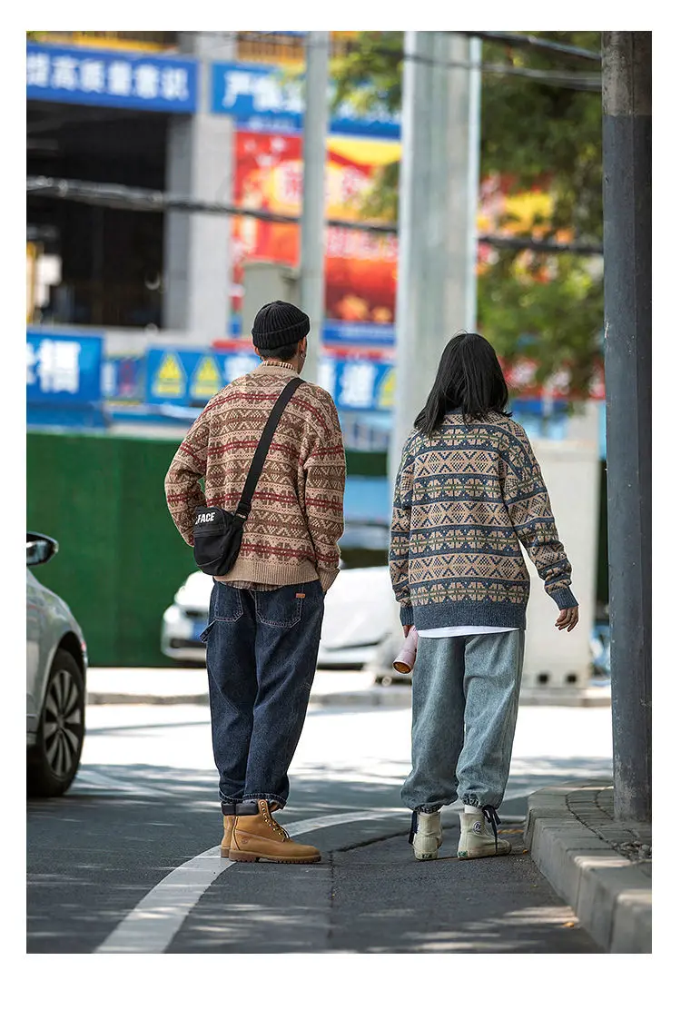 Japanese Style Knitted Sweater Couple Vintage Pullovers Causal Loose High Street Knitwears Men Jumpers Male Clothes