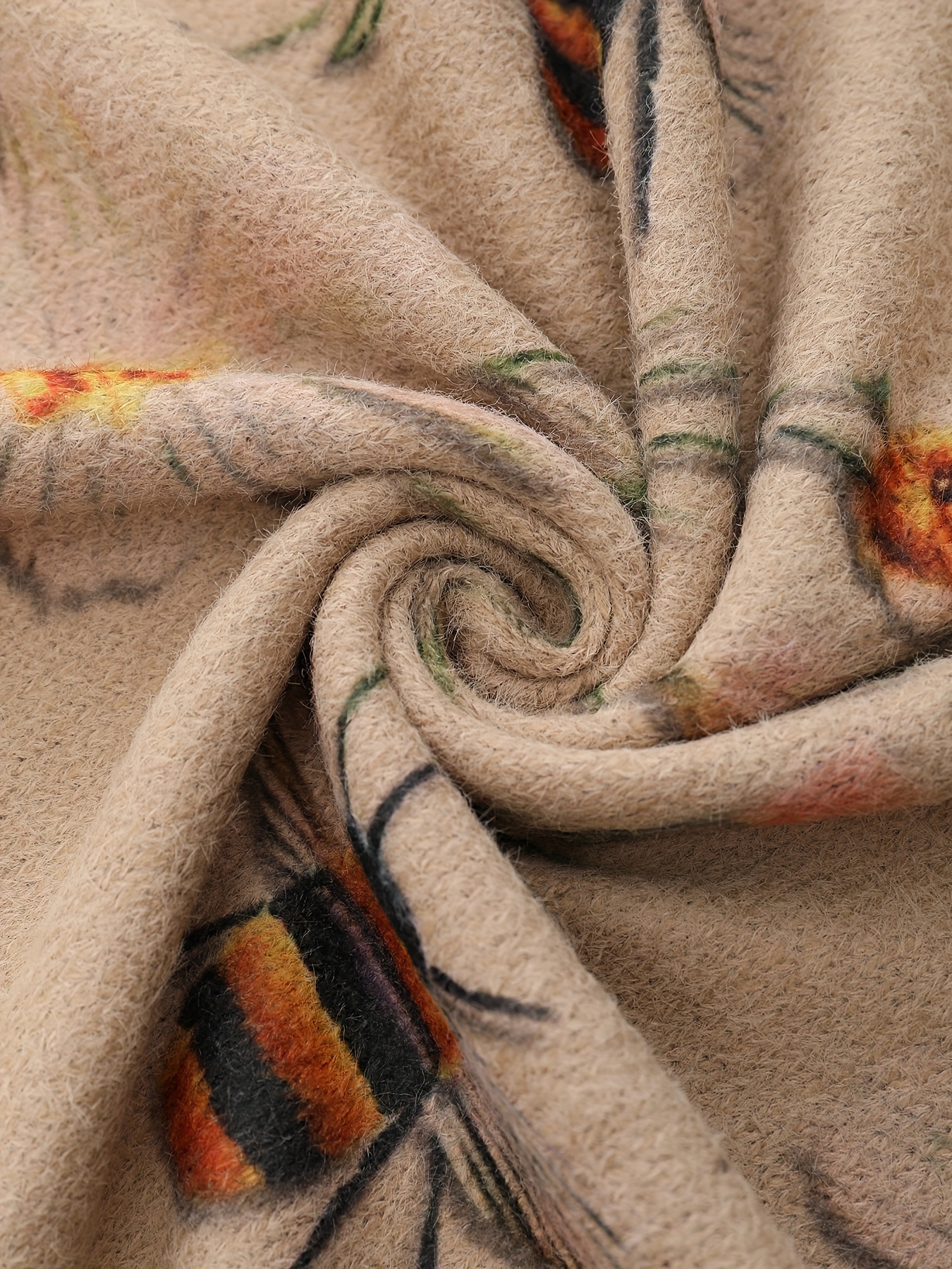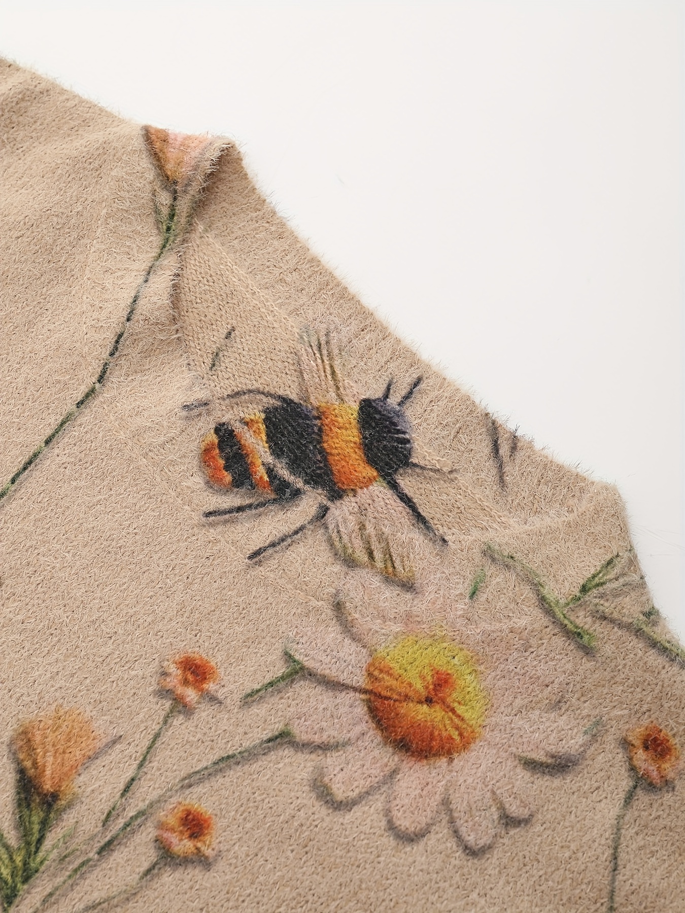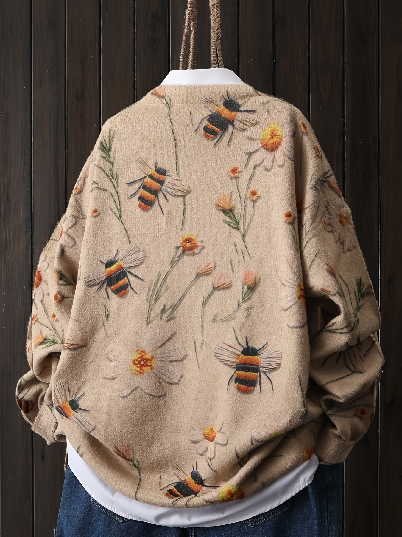 Long-Sleeved Sweater with a Bee And Flower Pattern,