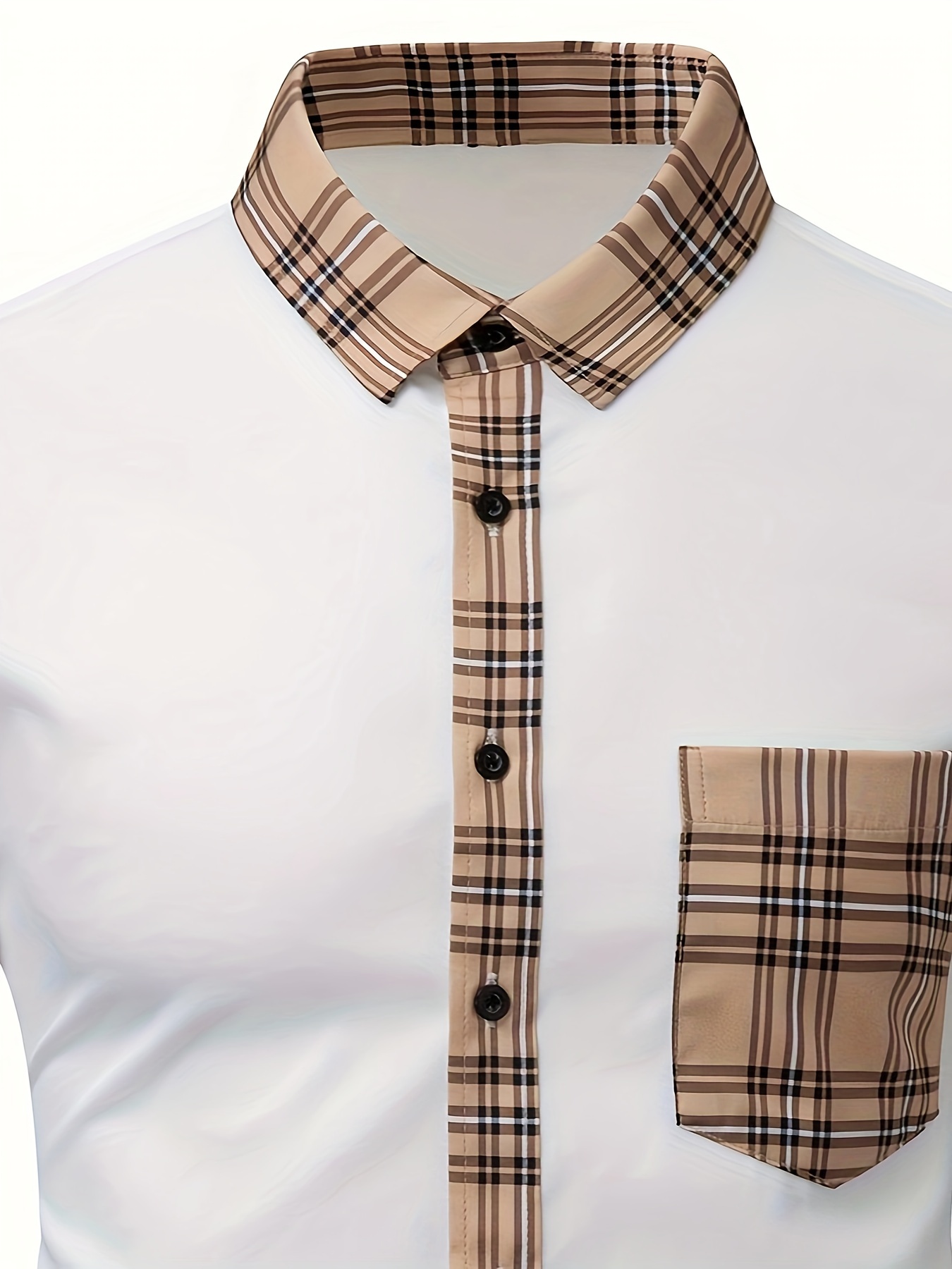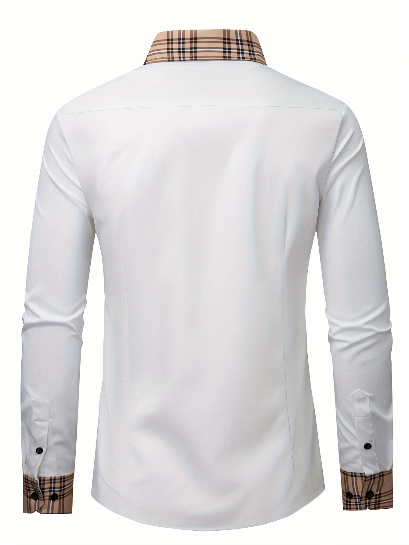 Men's Lapel Patchwork Dress Shirts Long Sleeve Casual Button .