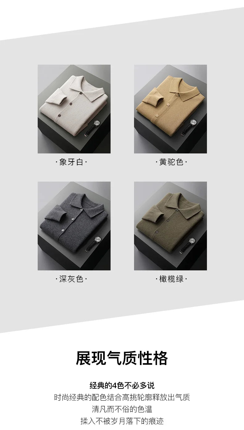 Autumn/Winter Cashmere Cardigan Men's Polo Neck Sweater.