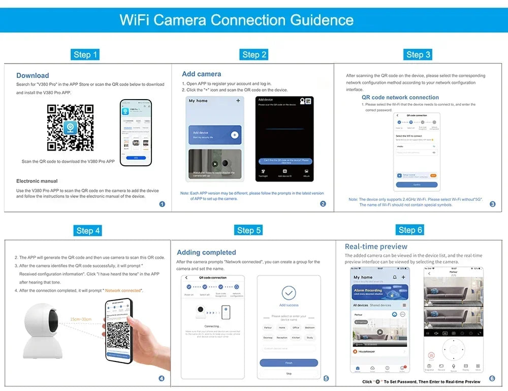 WiFi webcam version network: 2.4 G WiFi only, (4G SIM card or 5G WiFi not supported)Notes: