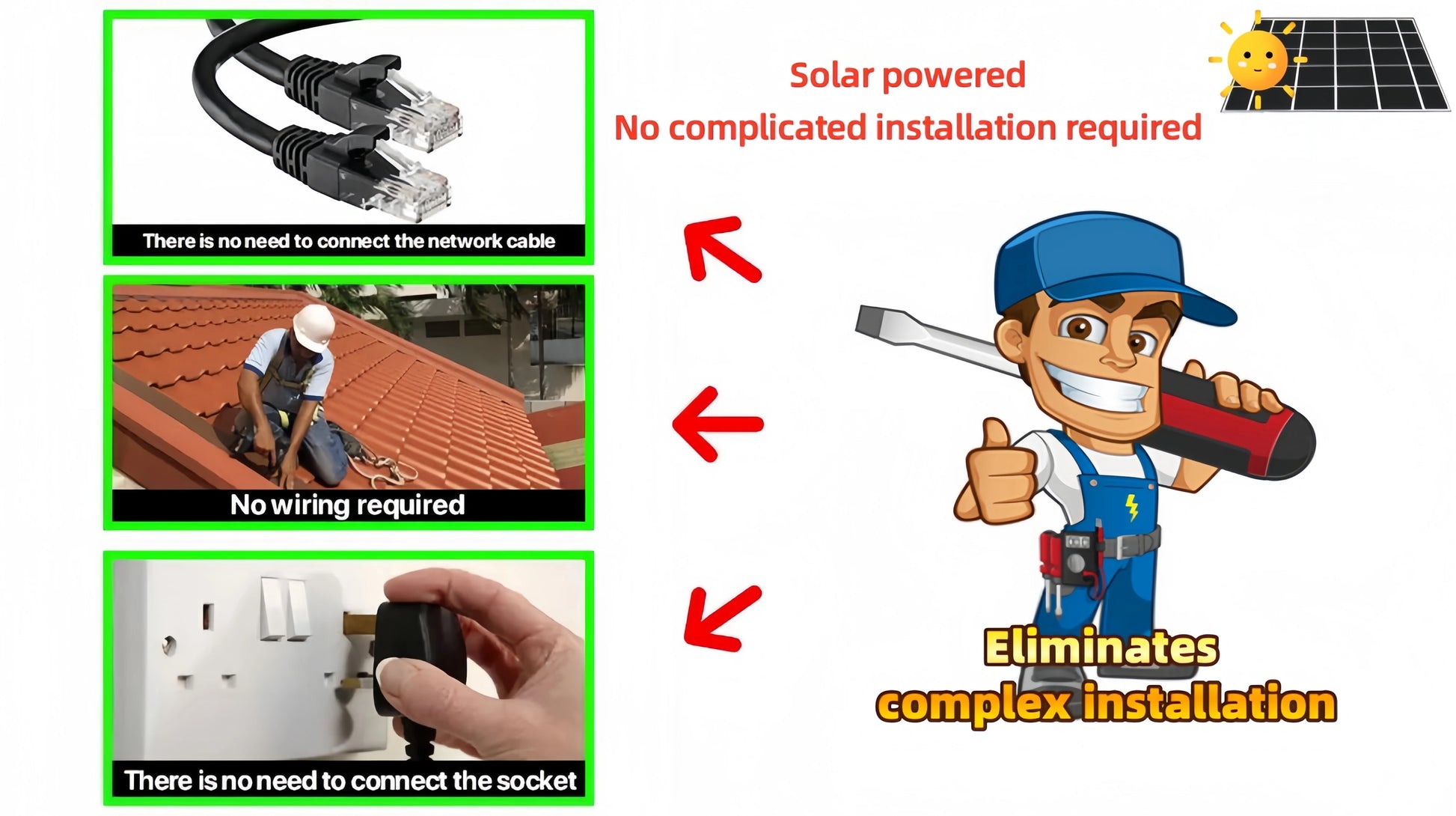 Solar security camera doesn't need cables, no power supply. Simply insert the 4G version SIM card or connect to WiFi 2.4G version wifi to use it with built-in battery and continuous solar charging for 365 days uninterrupted use. Easy to install and use. Save unnecessary and tedious steps, save time and labor
