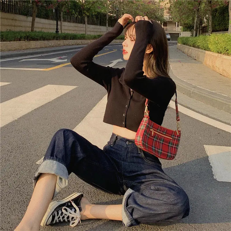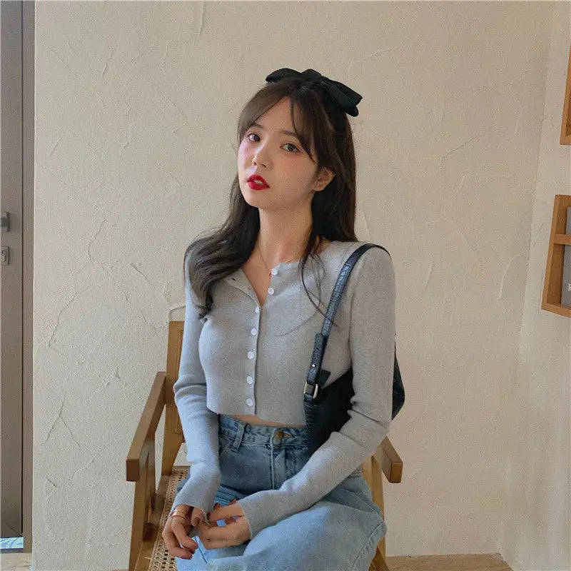 Woman Sweaters Cardigan Red V-neck Knitted Cardigan Women's .
