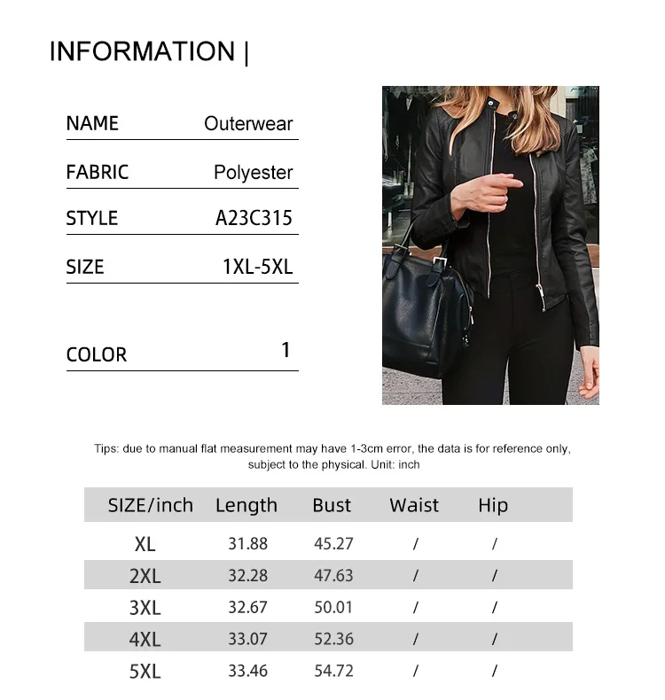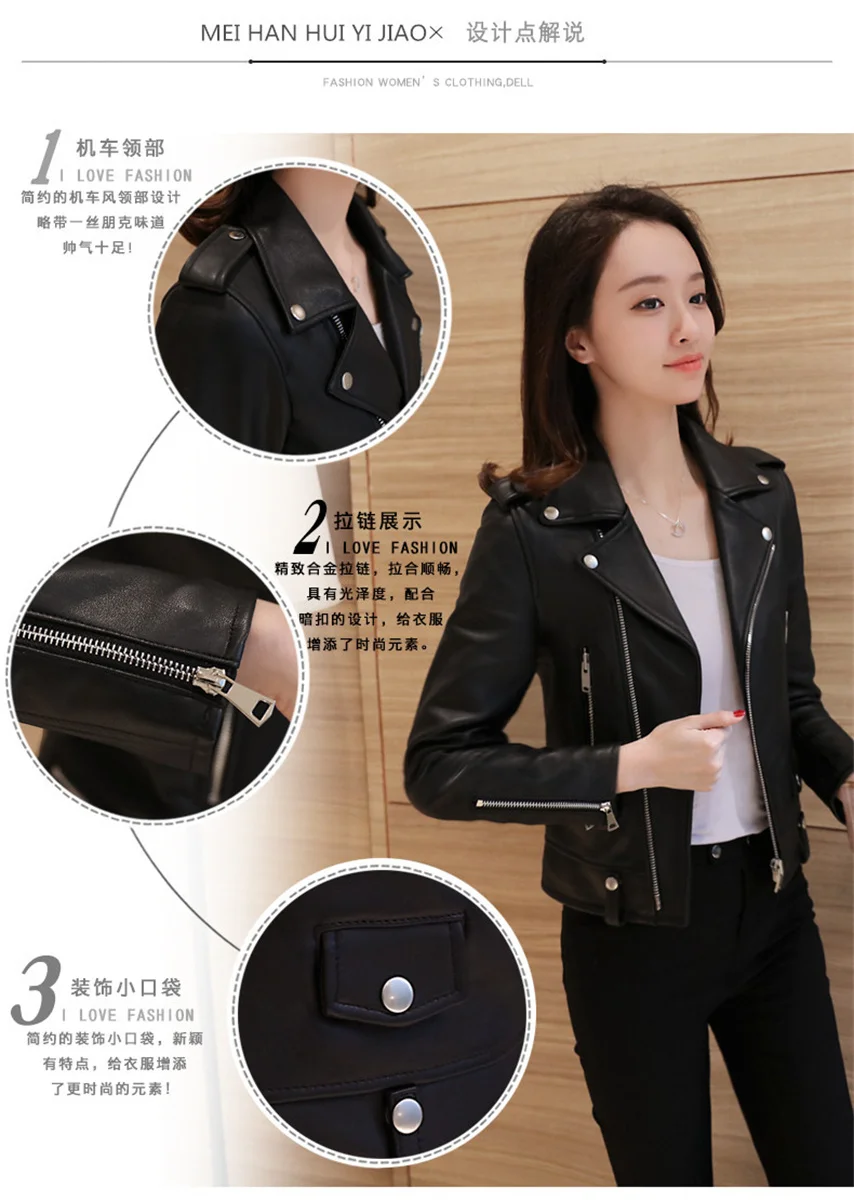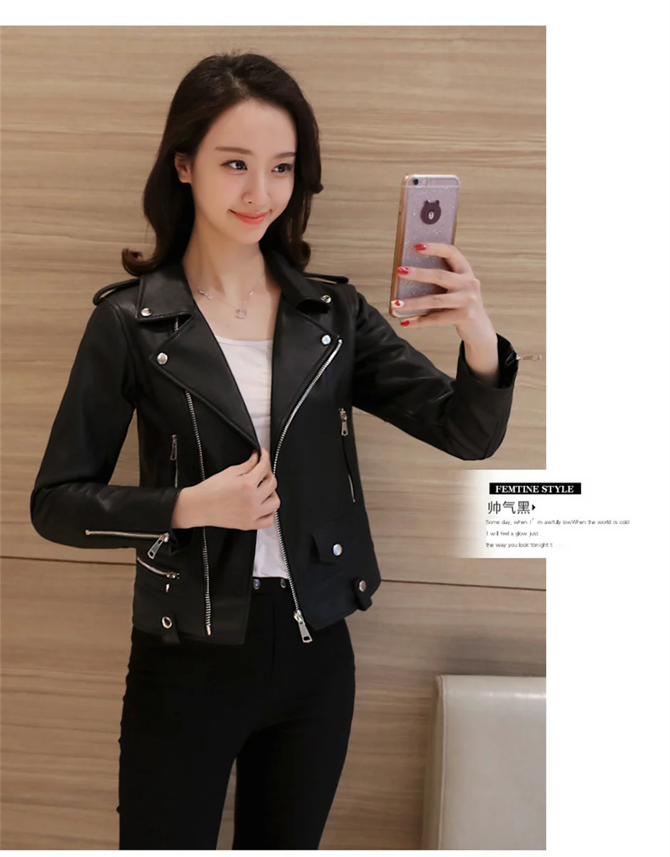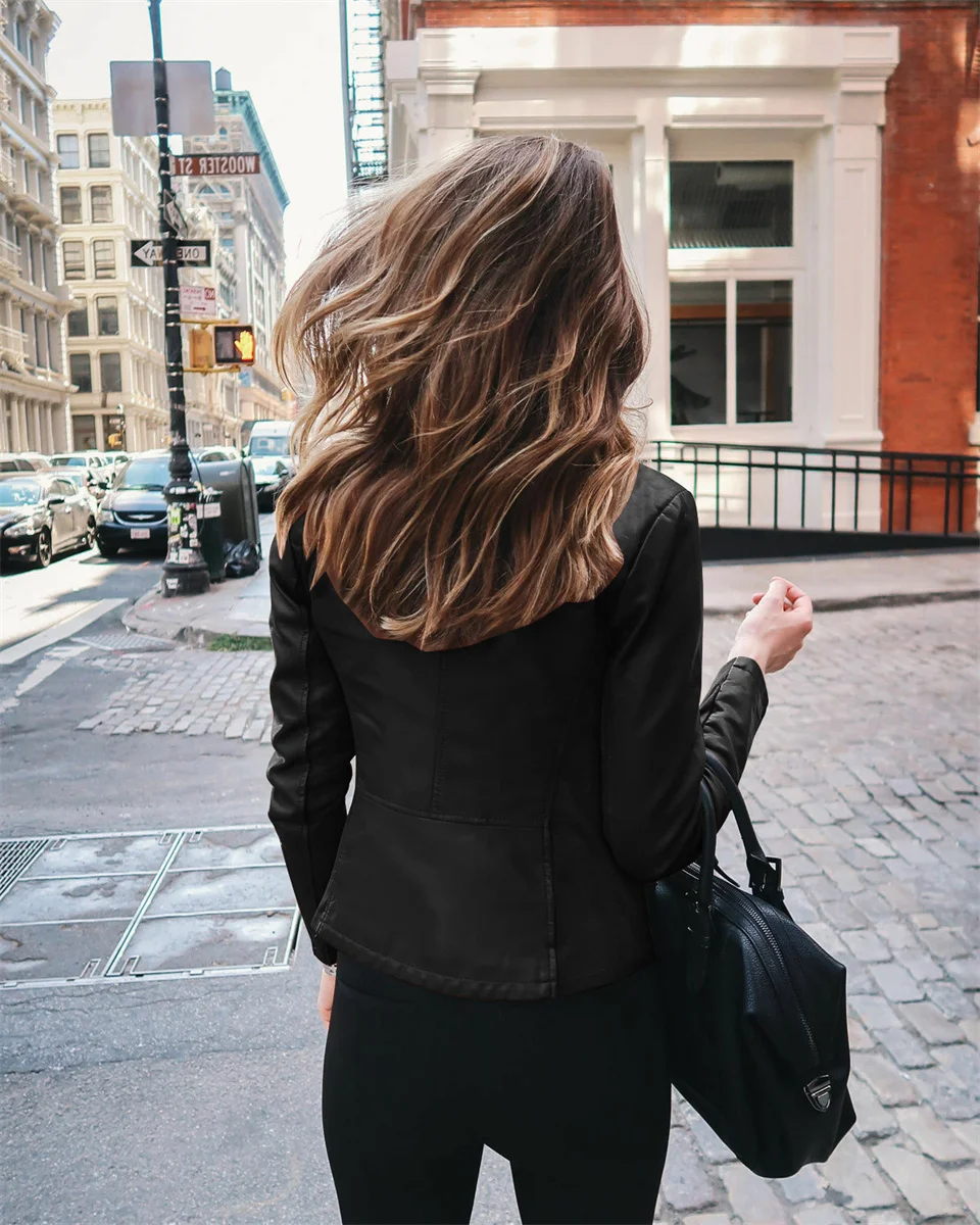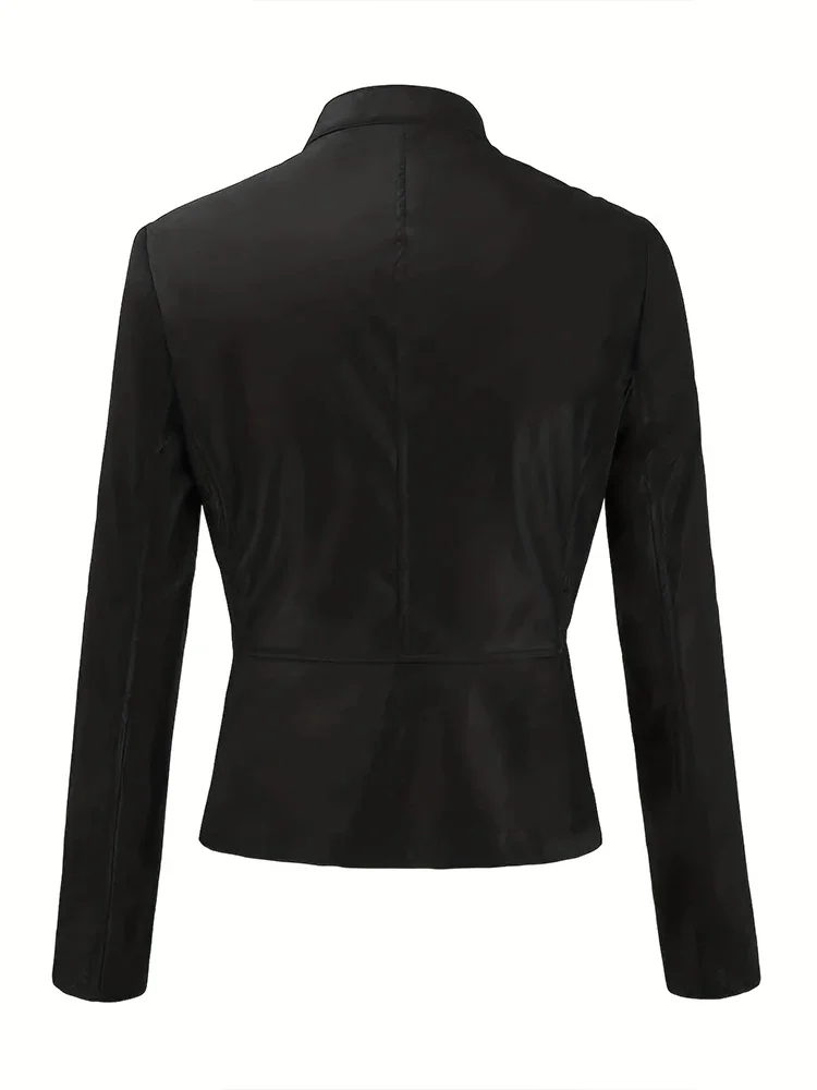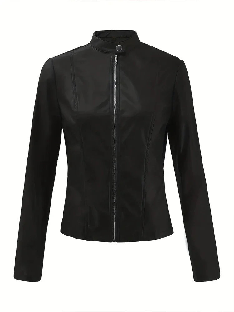 Women Cool Slim Fit Faux Leather Jacket Long Sleeve .