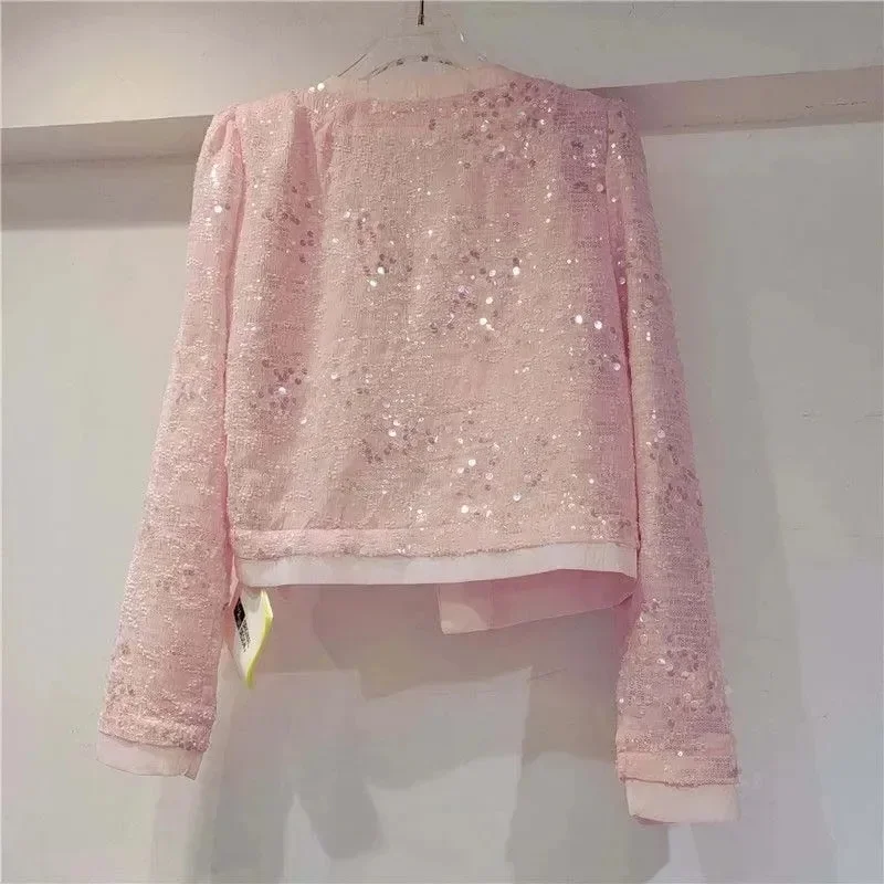 Women's Korean Outerwear Cardigan Splicing Sequin Jacket .