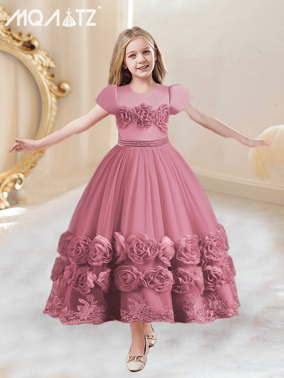Girl Formal Dress Ball Gown 3D Flower & Lace Embroidered Dress .