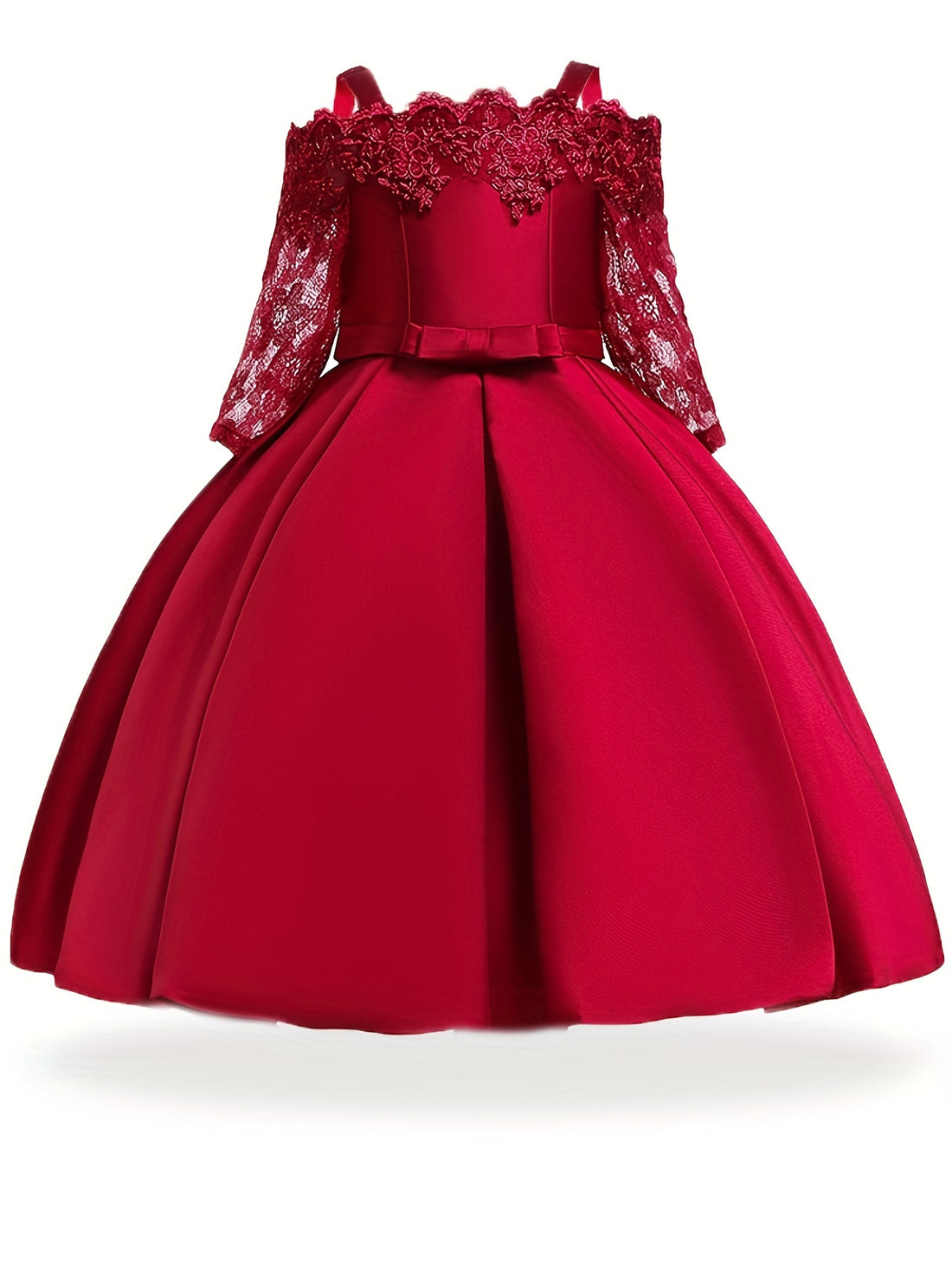 Toddler Girls Adorable Off The Shoulder Embroidery Lace Long Sleeve Dress.