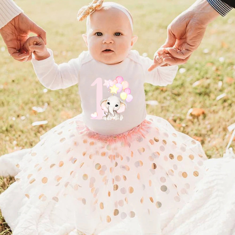 Baby Girls 1st Birthday Outfit elephant print Girls Dress.