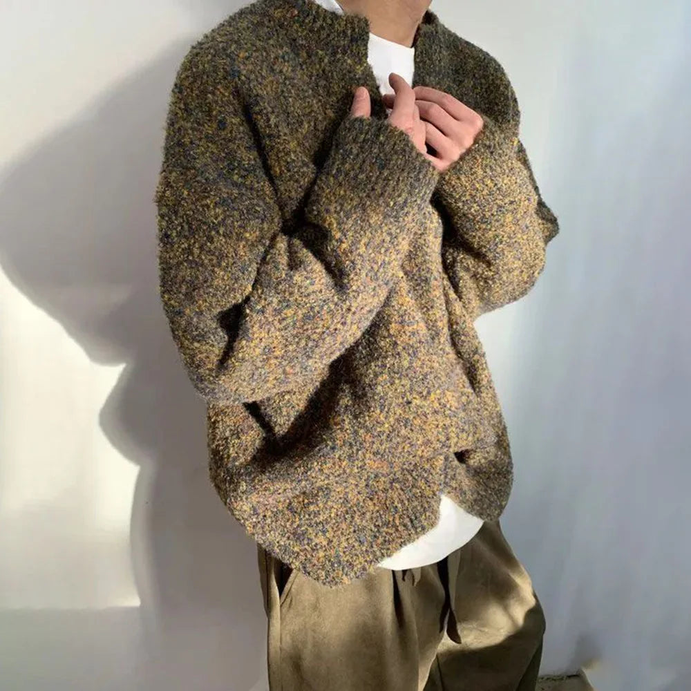 Trendy Knitted Sweater For Men Casual Round Neck Warm Inner Loose.