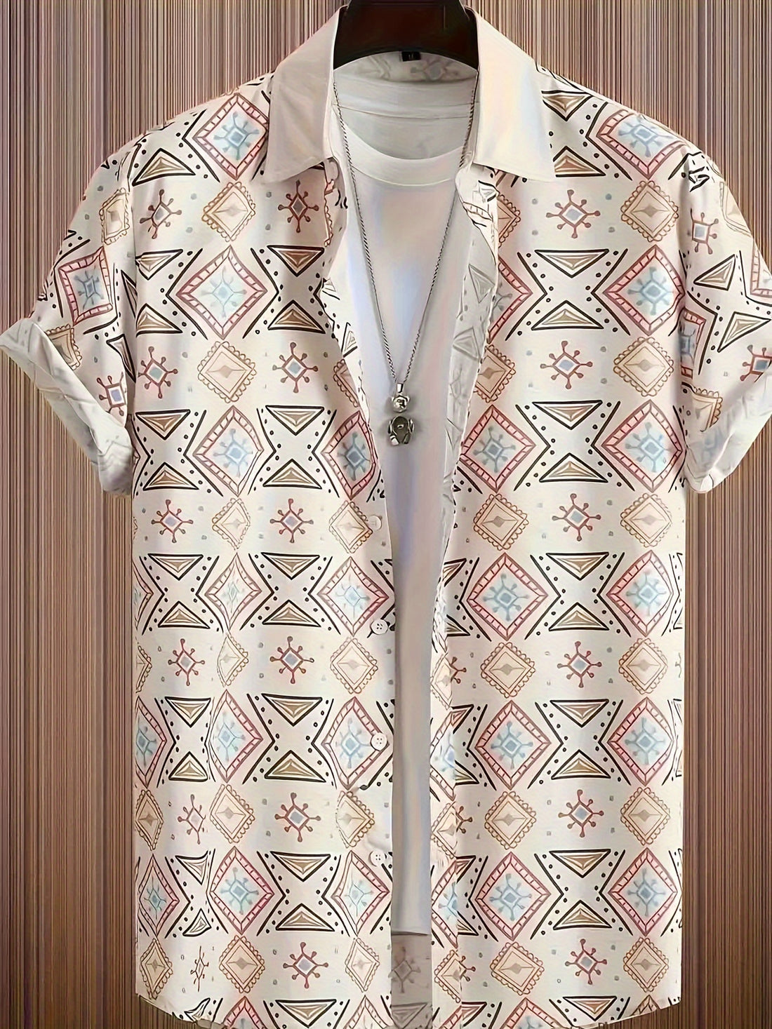 Men's Retro Bohemian Style Pattern Short Sleeve .