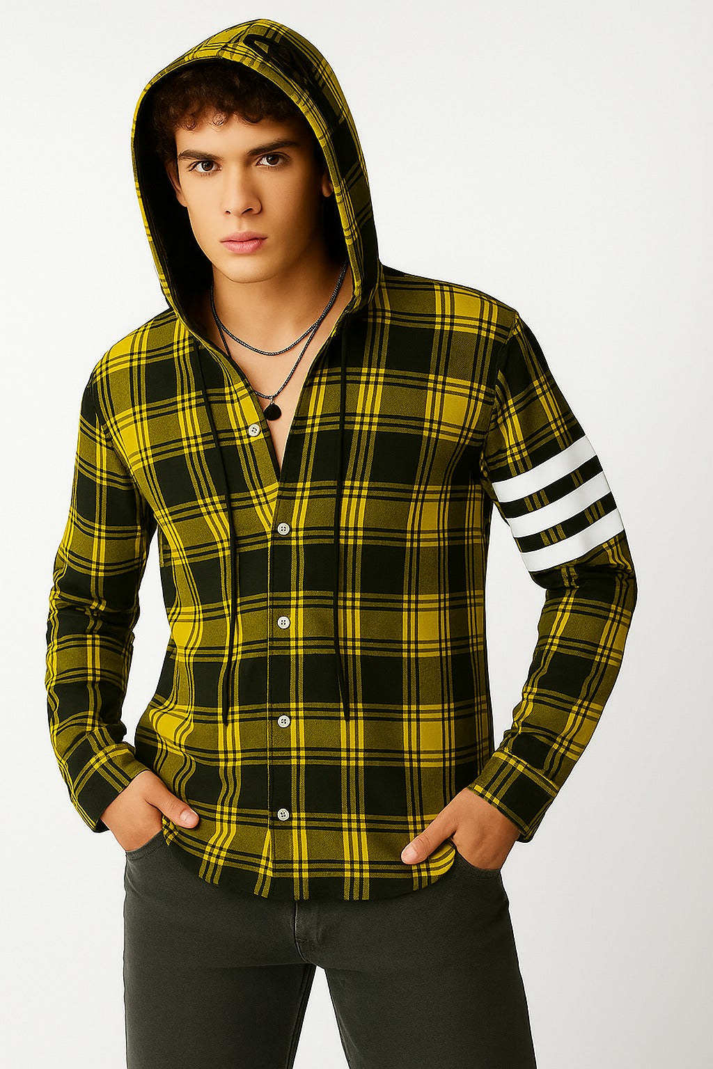 Men's Checkered Hoodie Shirt | MH