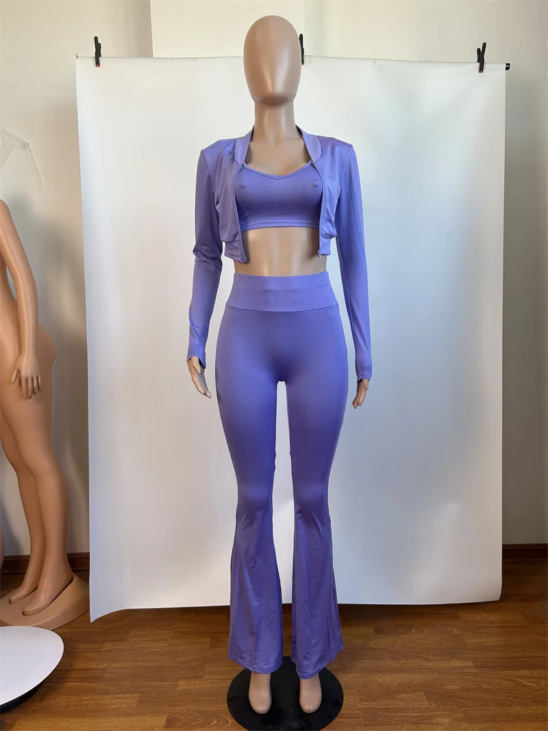 Autumn Solid Women Tracksuits Slim 3 Piece Sets Tank Crop Tops.