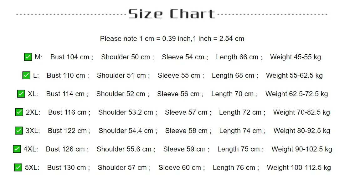 Size: M L XL 2XL 3XL 4XL 5XL