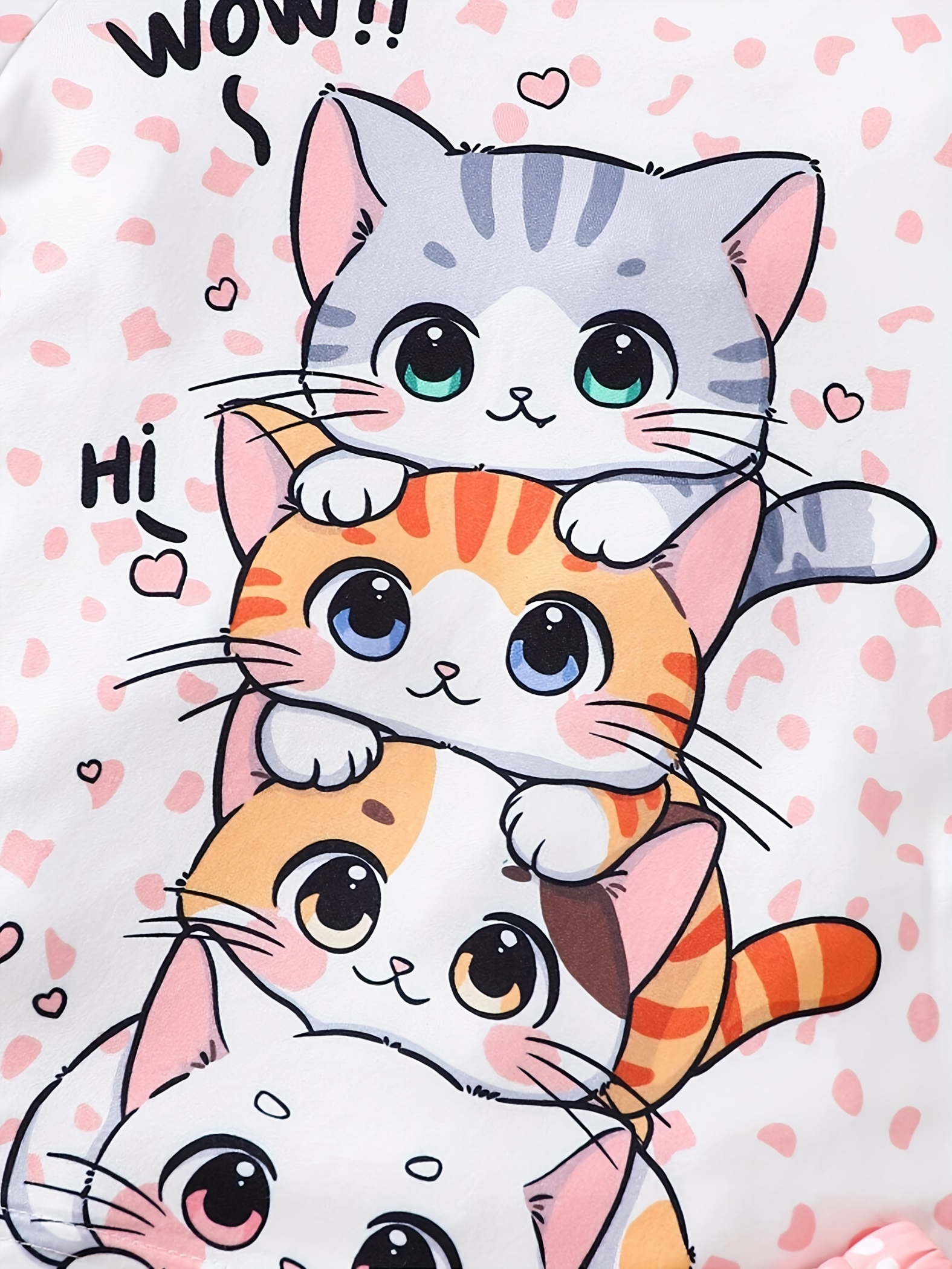2pcs Girls Cute Underwear Sets, Cute Kitten Print Short Shirts & Shorts,