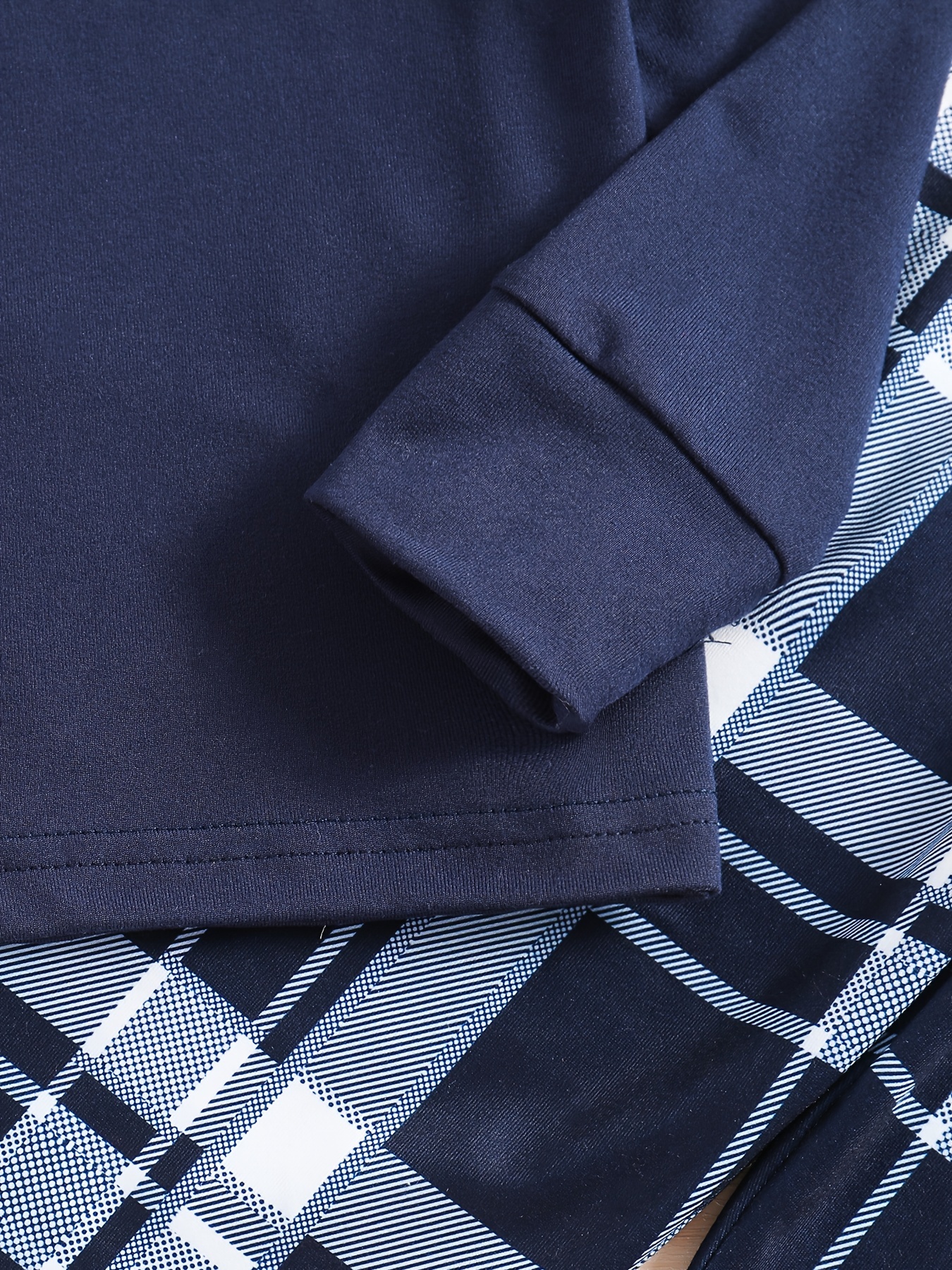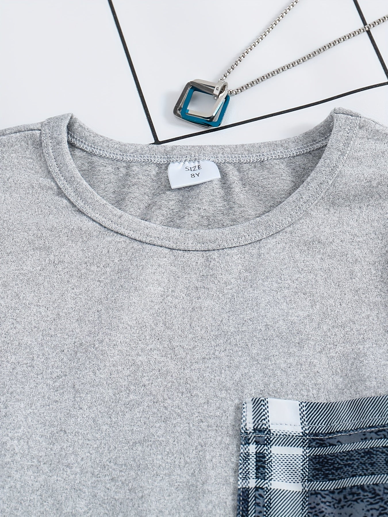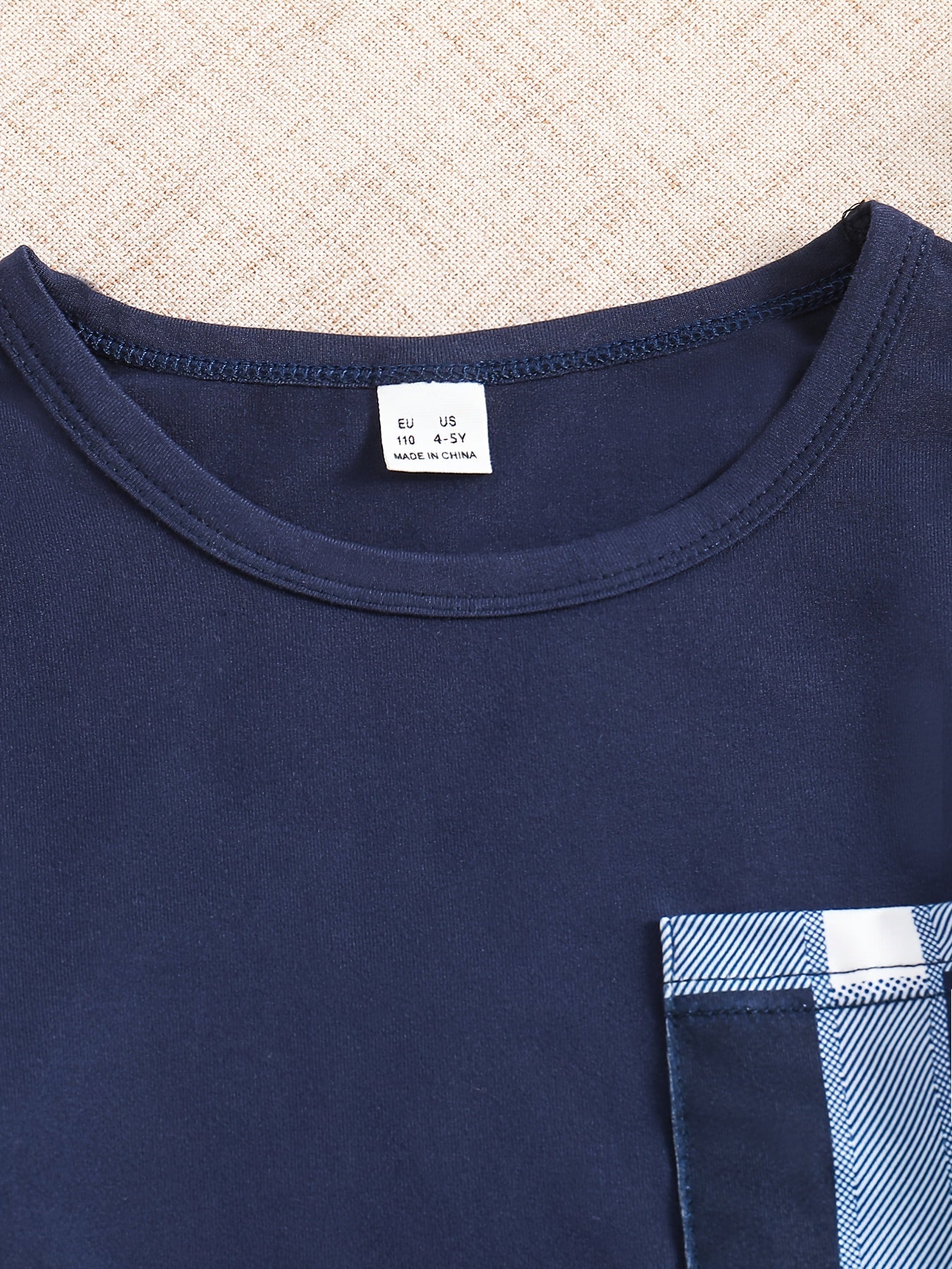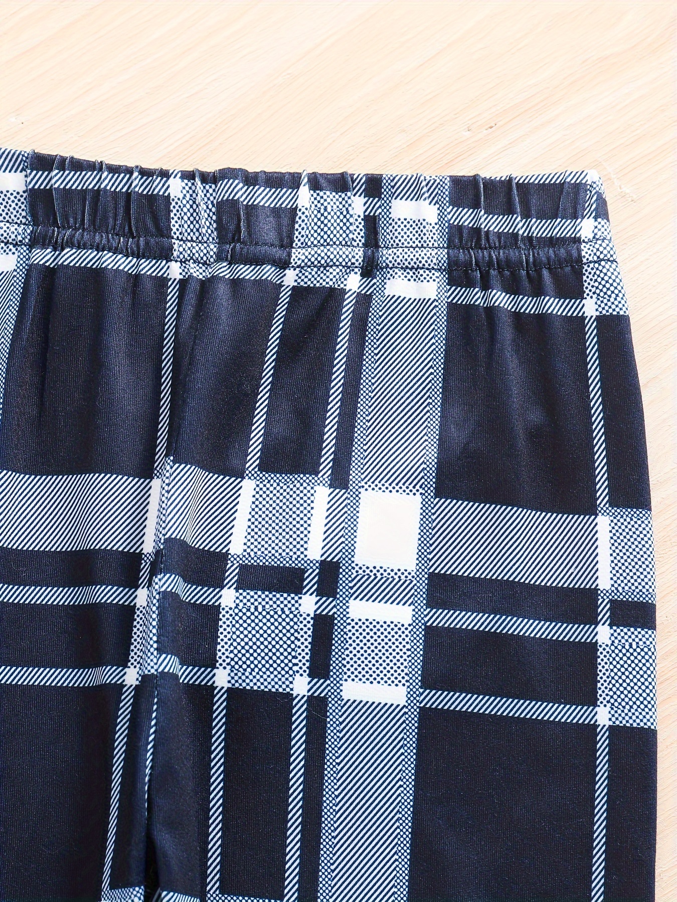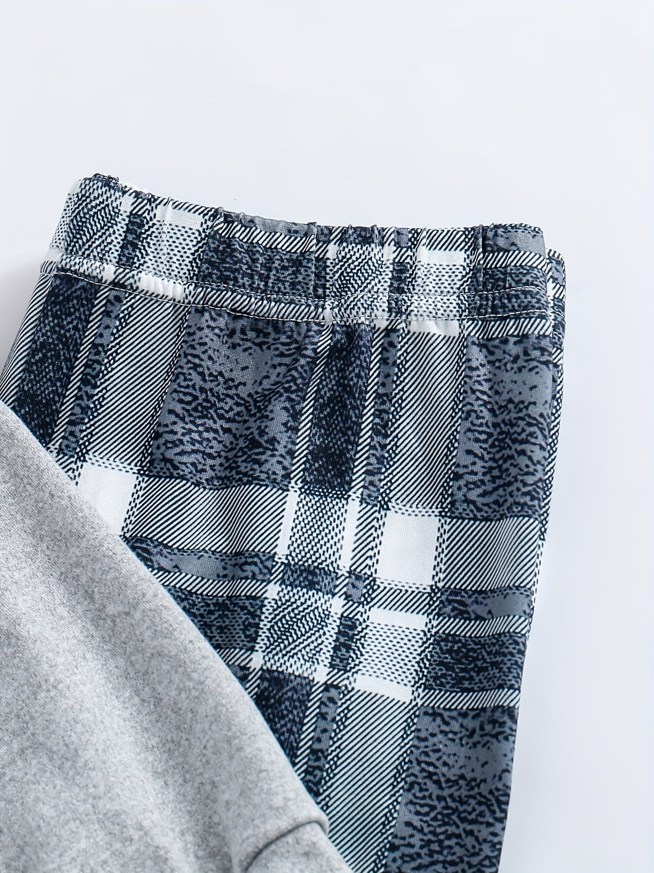 2pcs Plaid Pattern Pajamas For Kids, Pocket Front Long Sleeve Top & Pants Set,