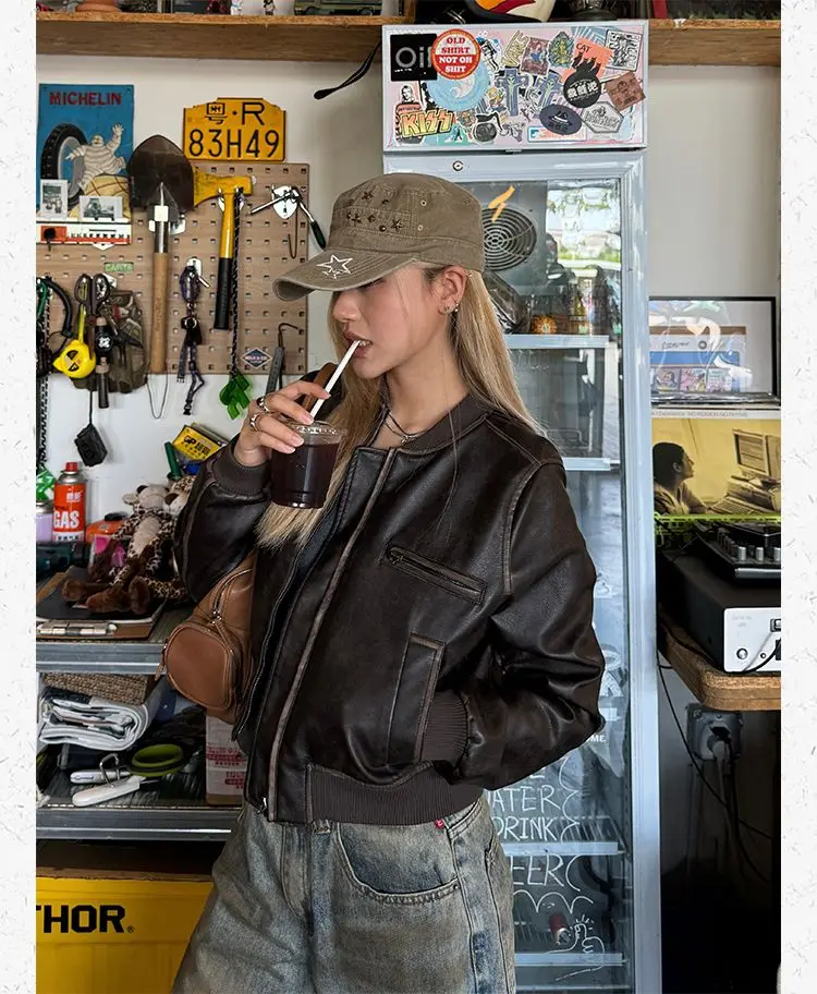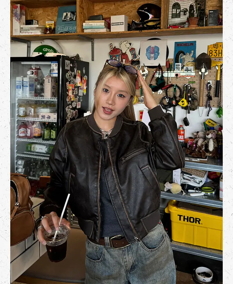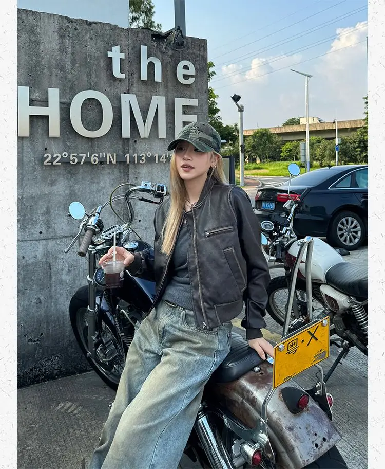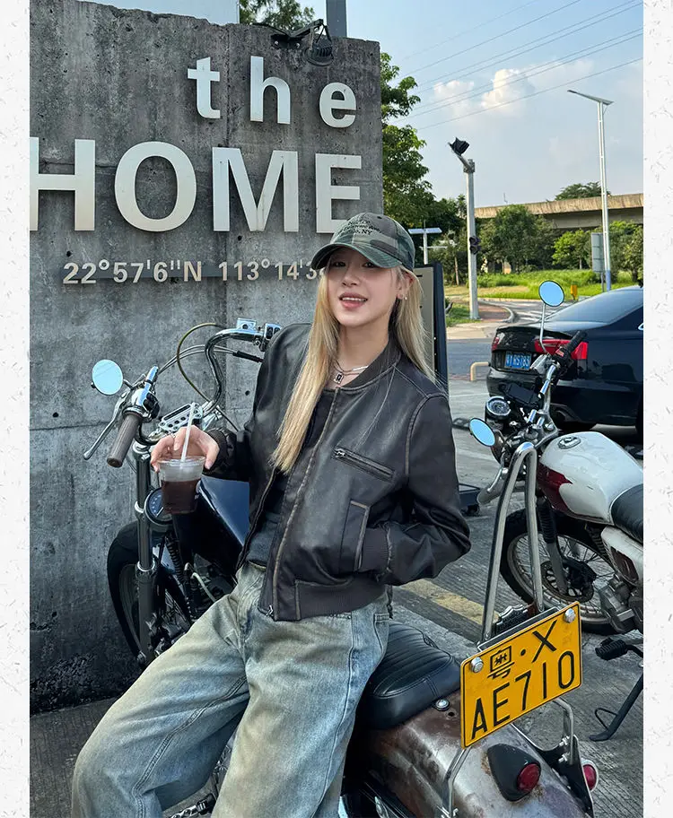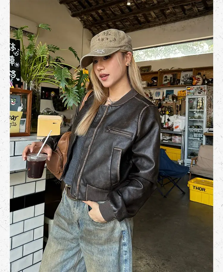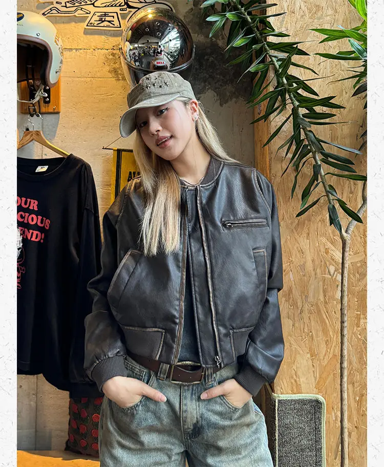 American Vintage Short Motorcycle Leather Jacket Women.