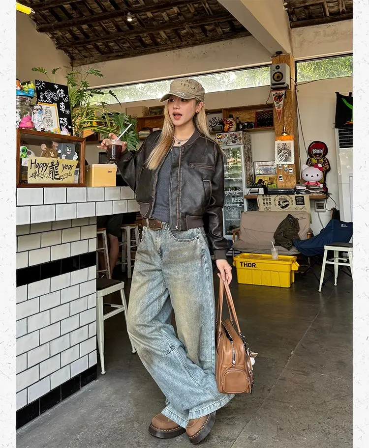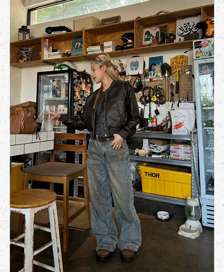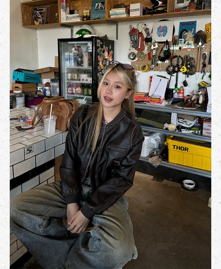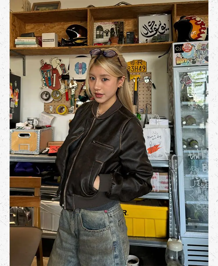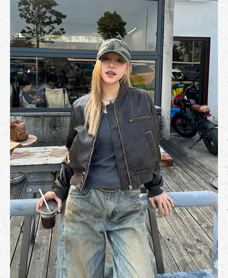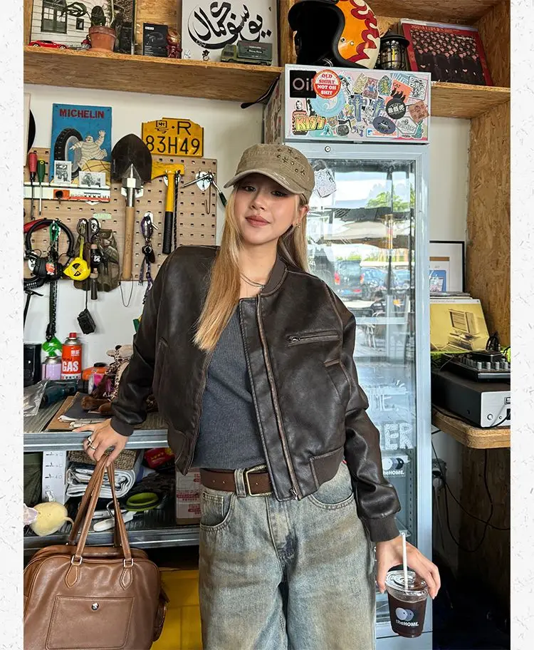 American Vintage Short Motorcycle Leather Jacket Women.