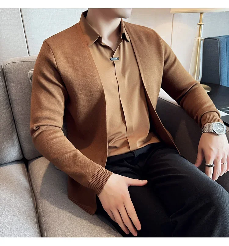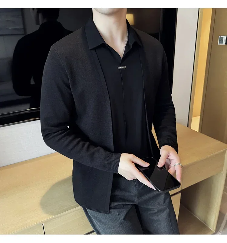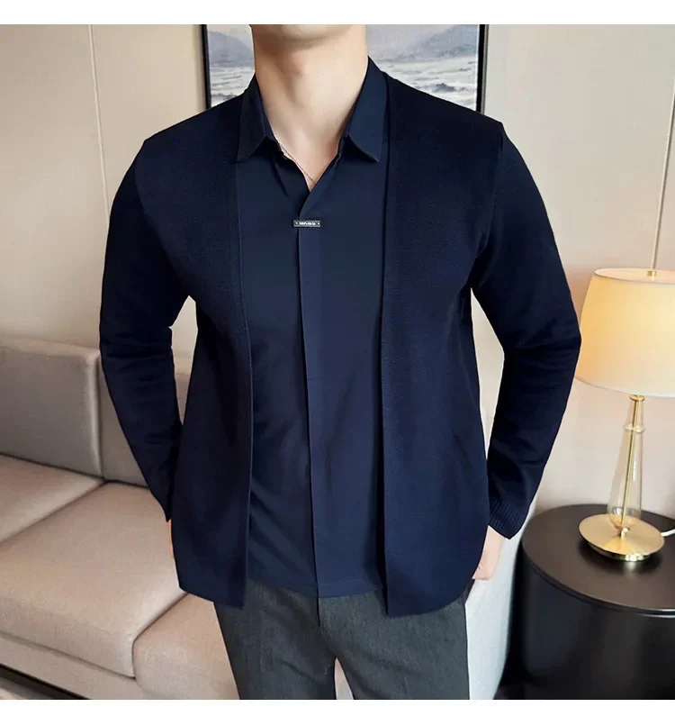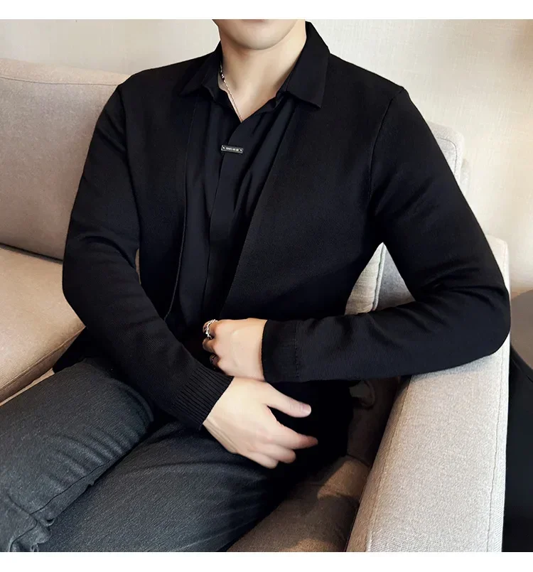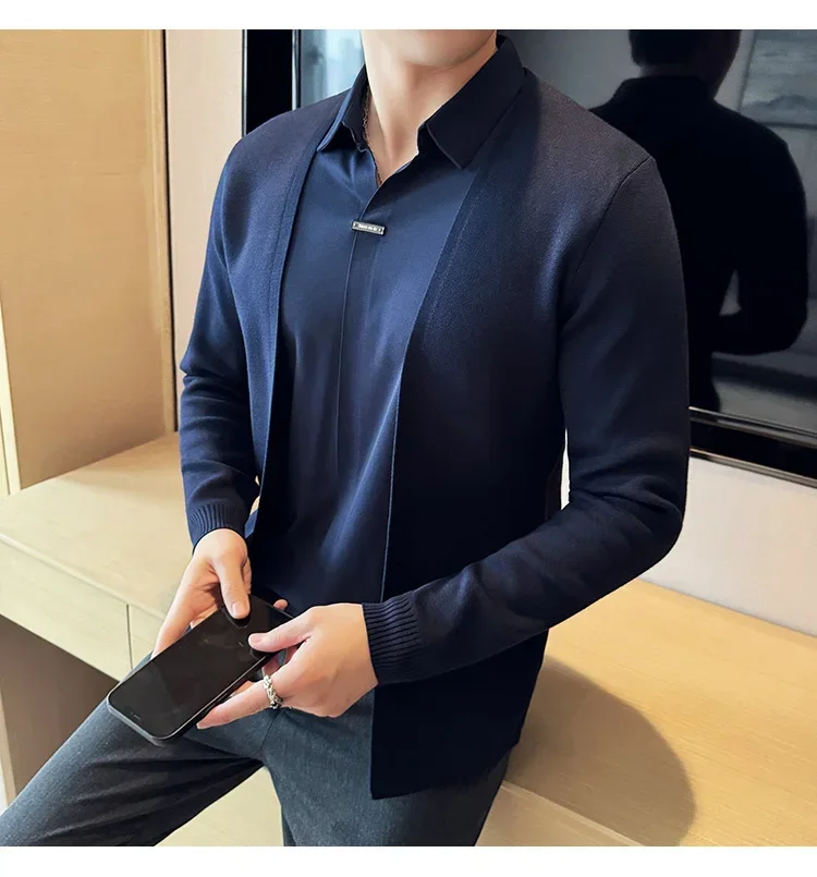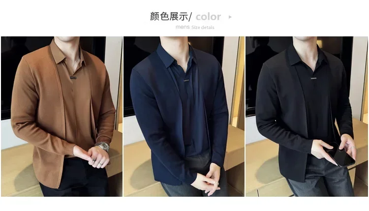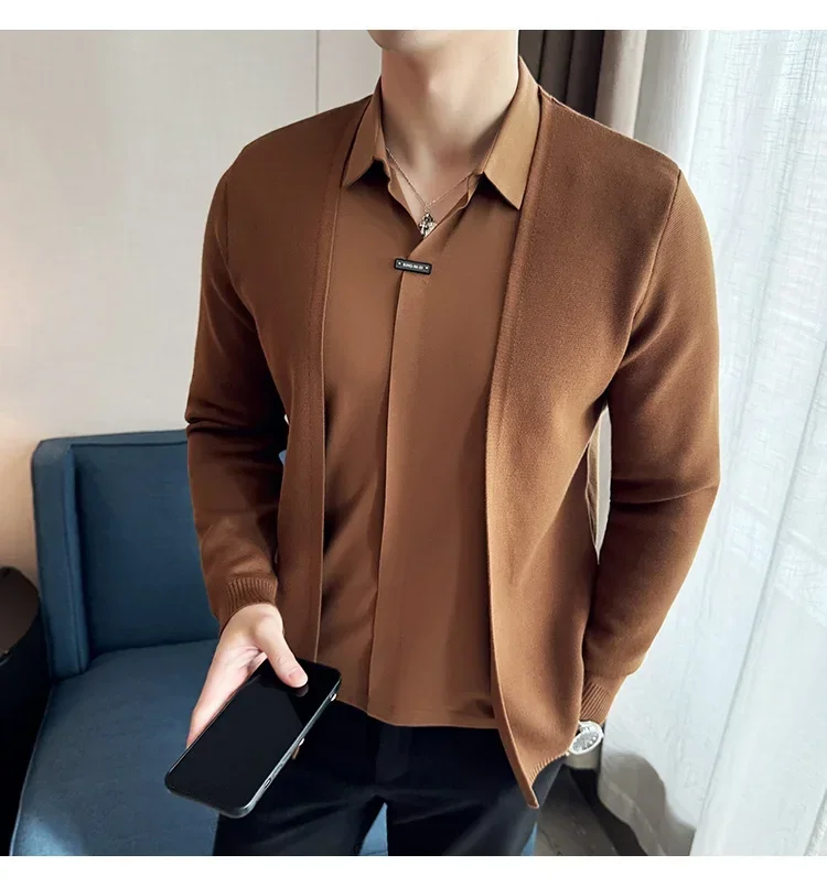 Autumn New Fake 2 Pieces Knitted Cardigan Traceless Shirt.