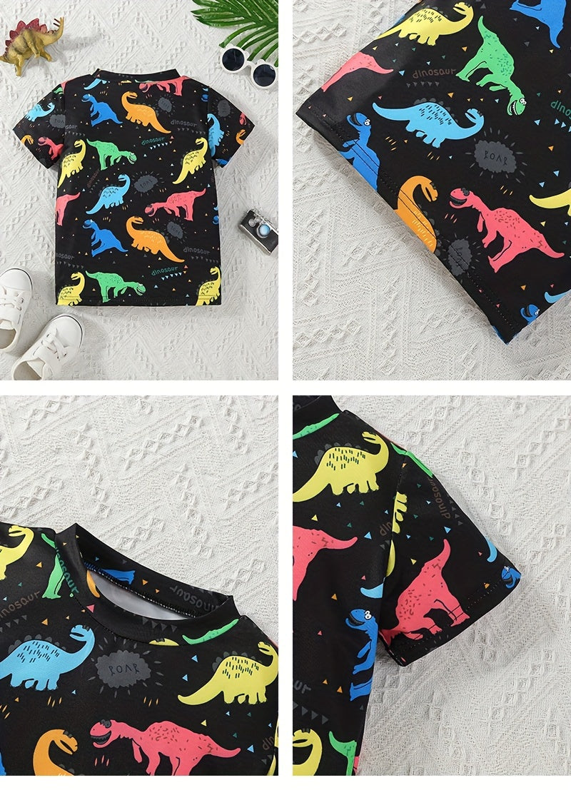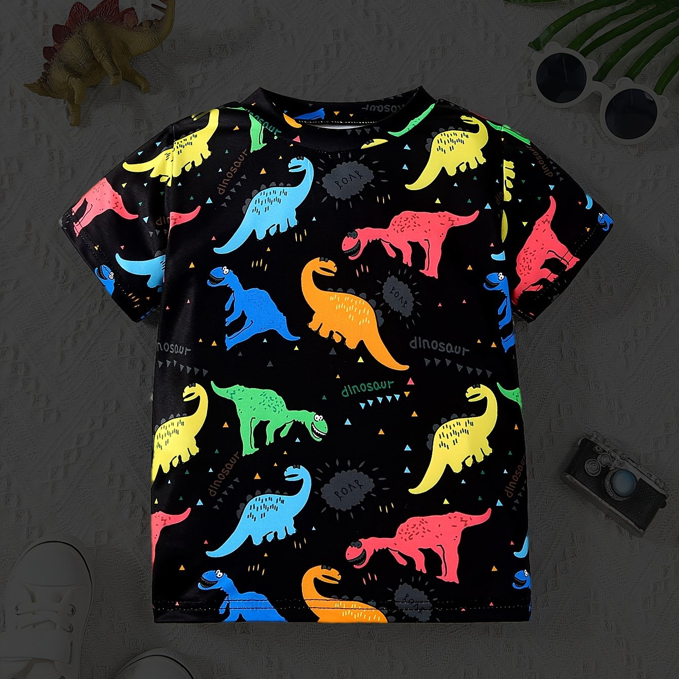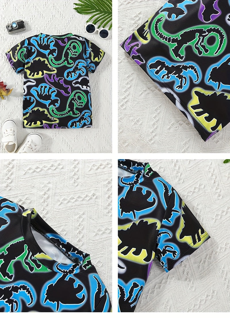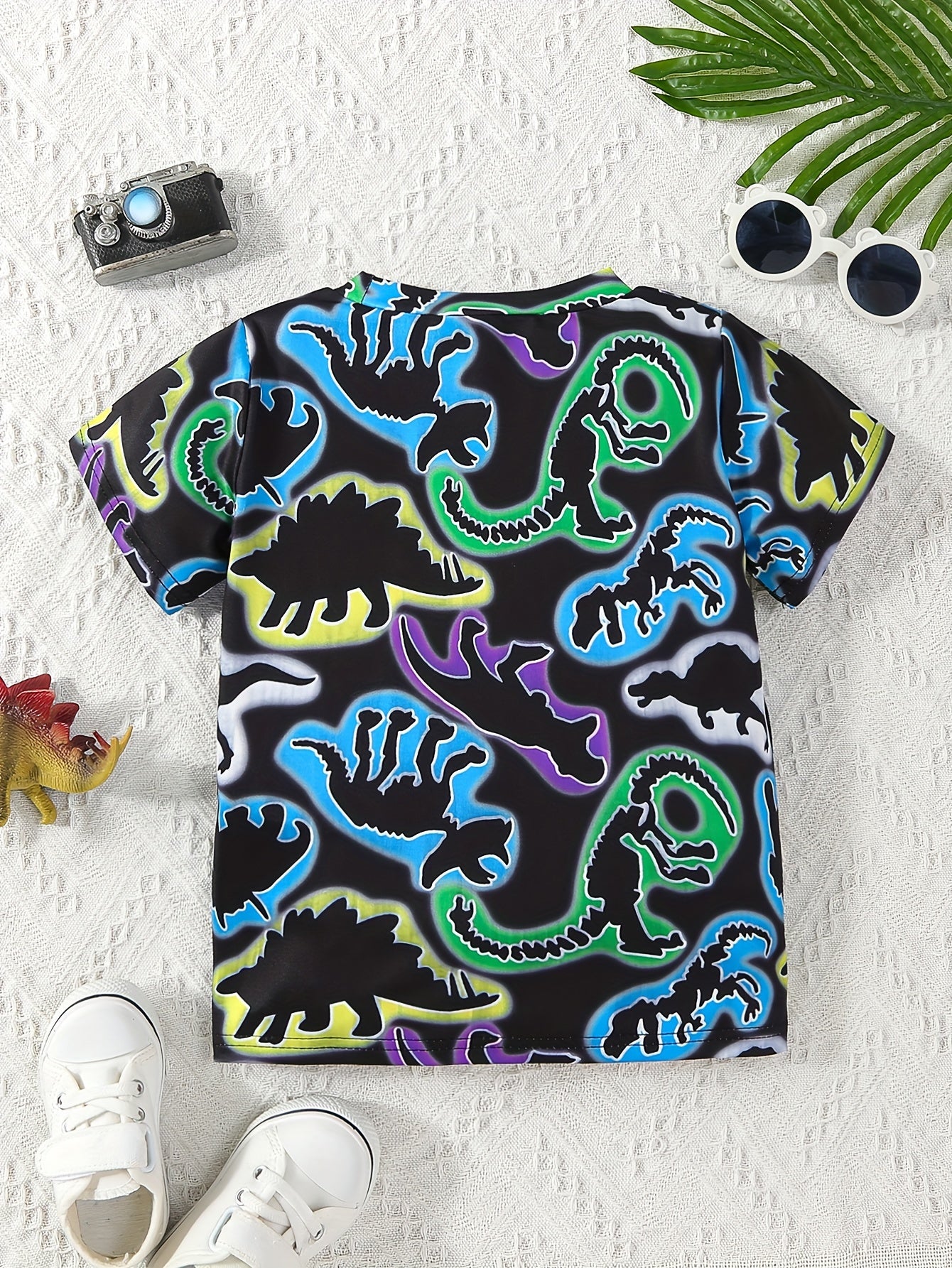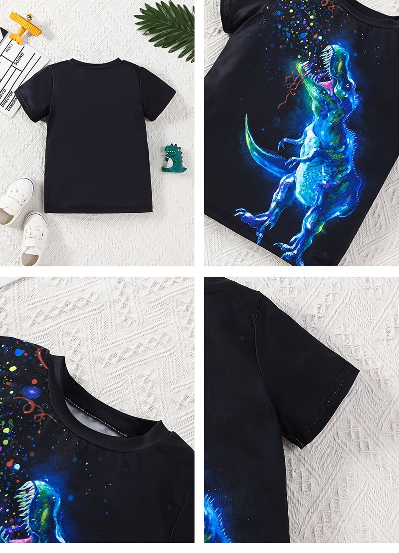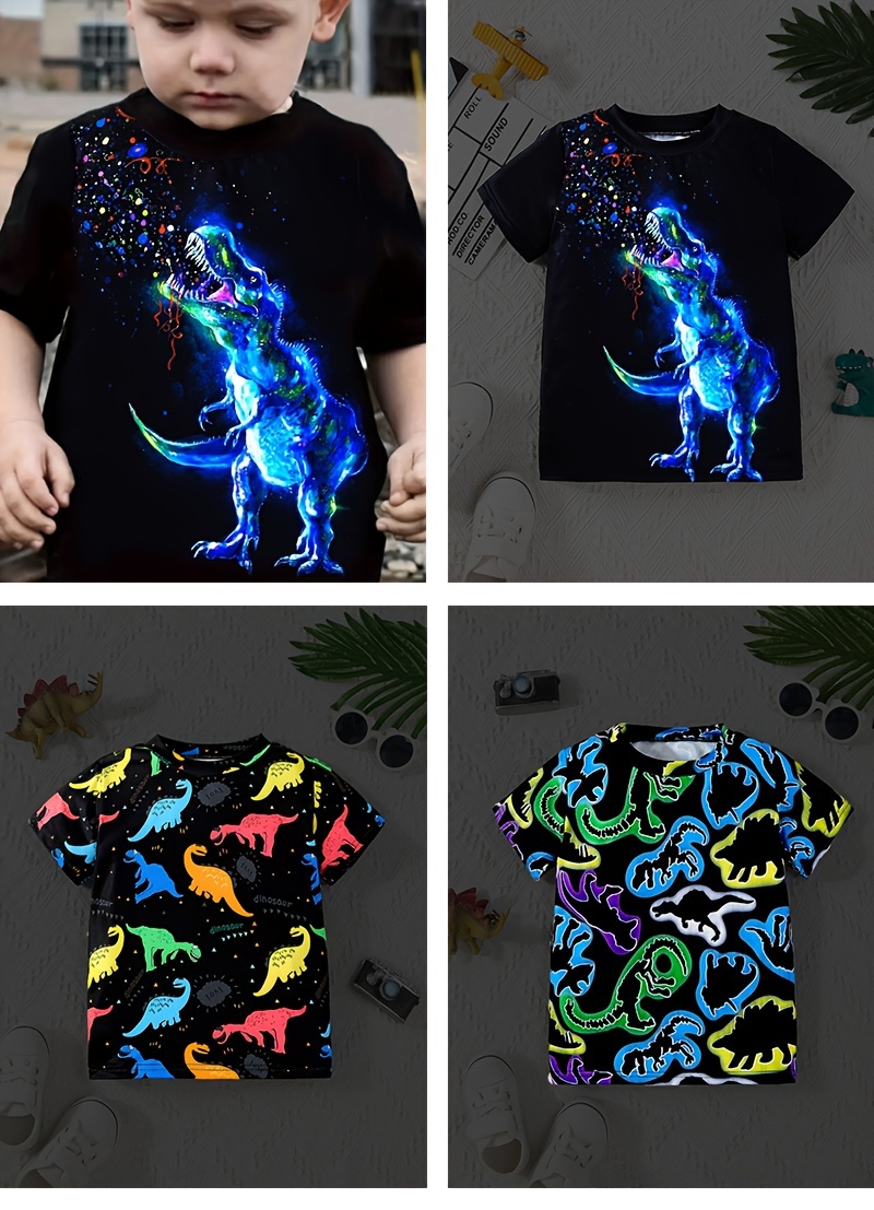 Cartoon Dinosaur Print Boys Glow In The Dark T-shirt,