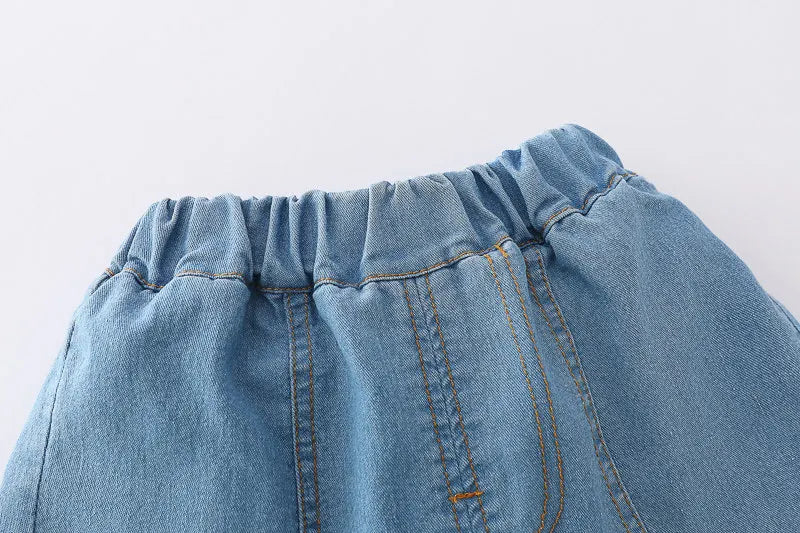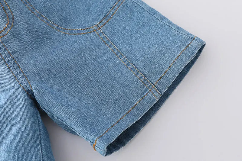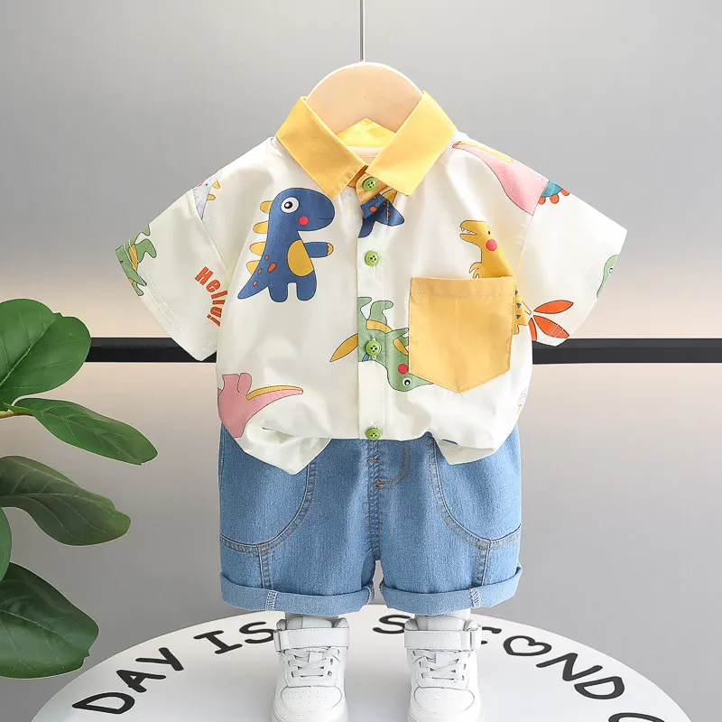 Children Print Dinosaur Shirts Denim Shorts 2Pcs/Set Kids Fashion .