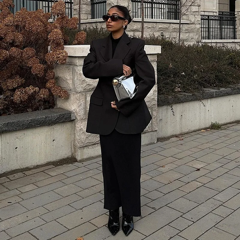 Elegant Lapel Blazer Skirt Set Women Casual Slim.