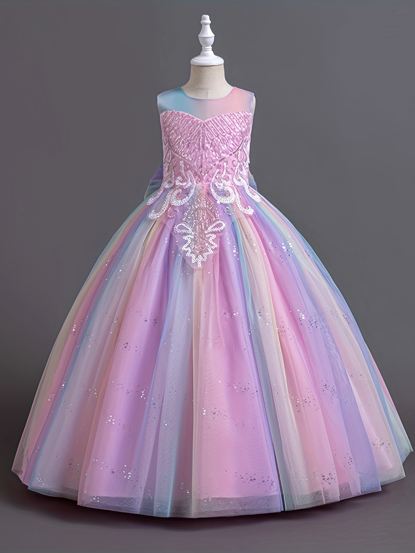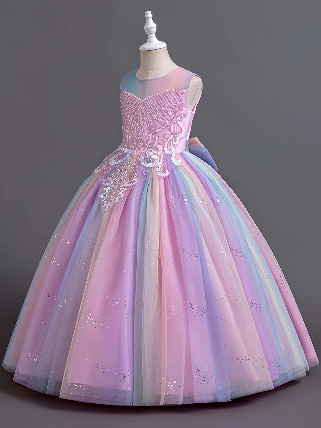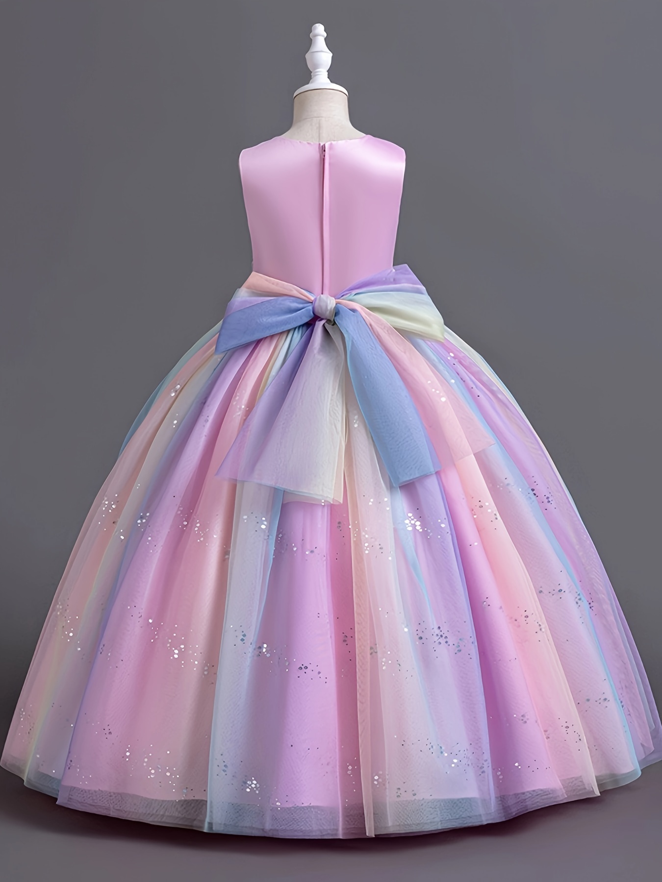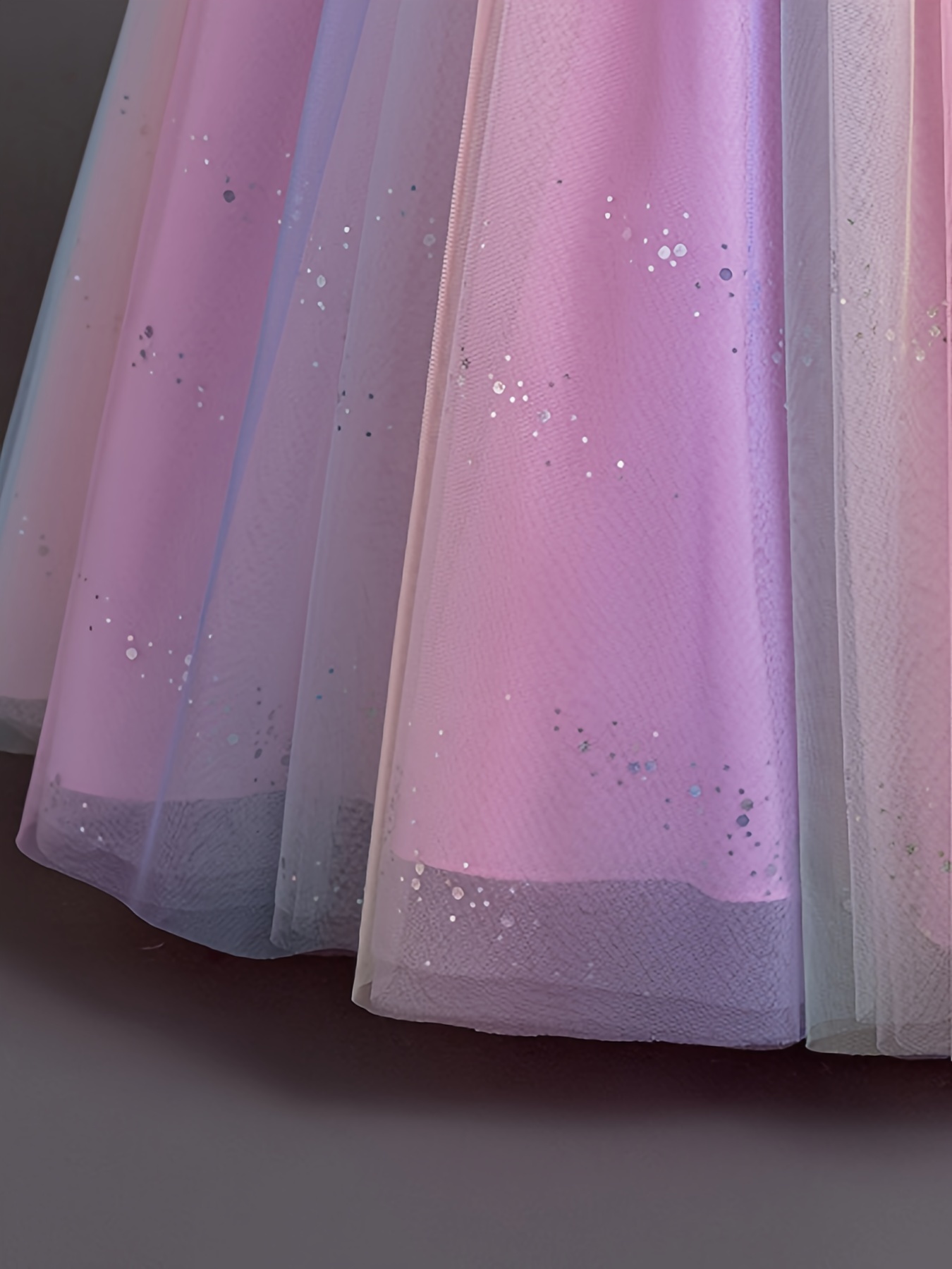 Girls' Rainbow Princess Dress with Lace and Tulle,
