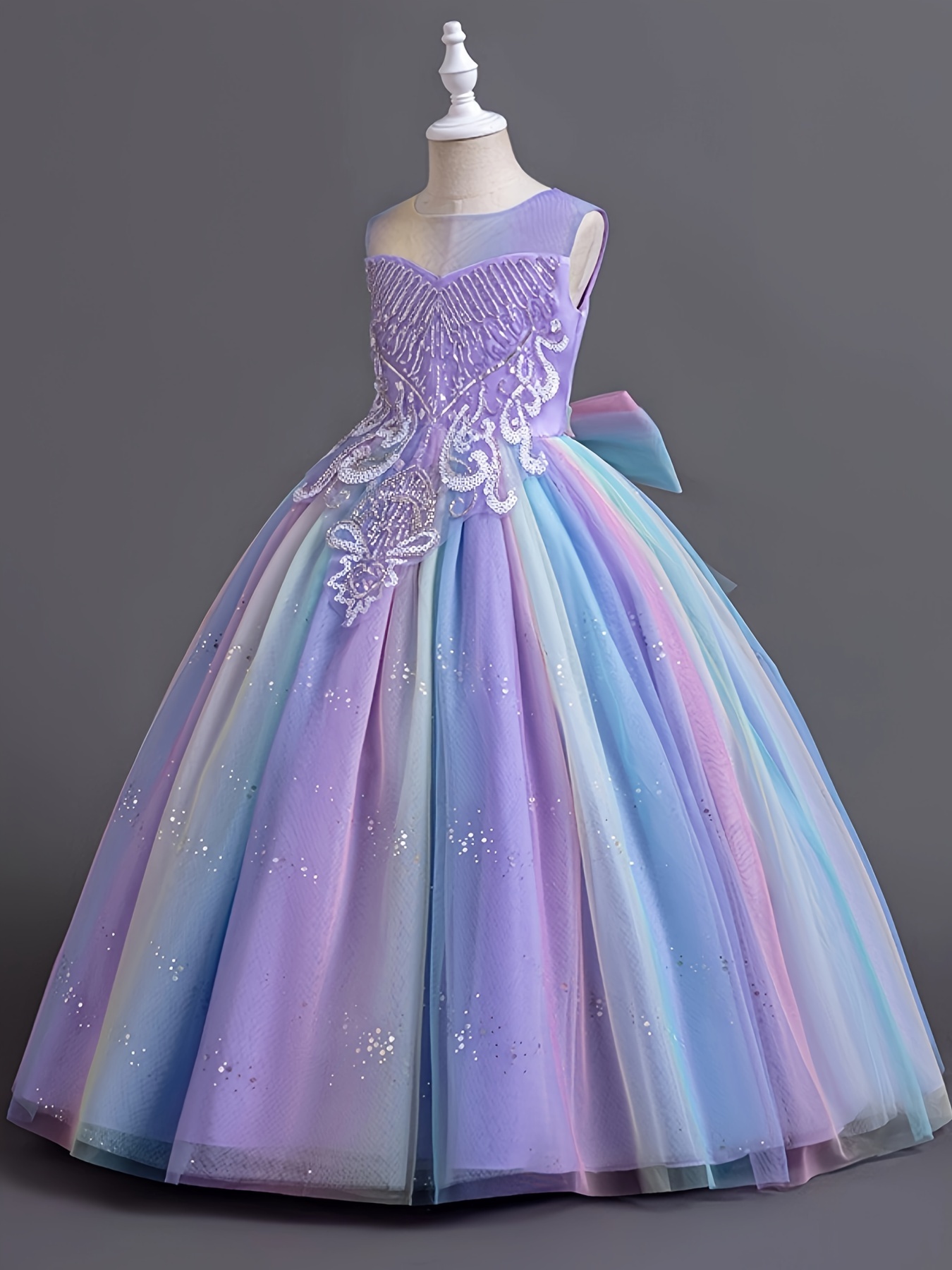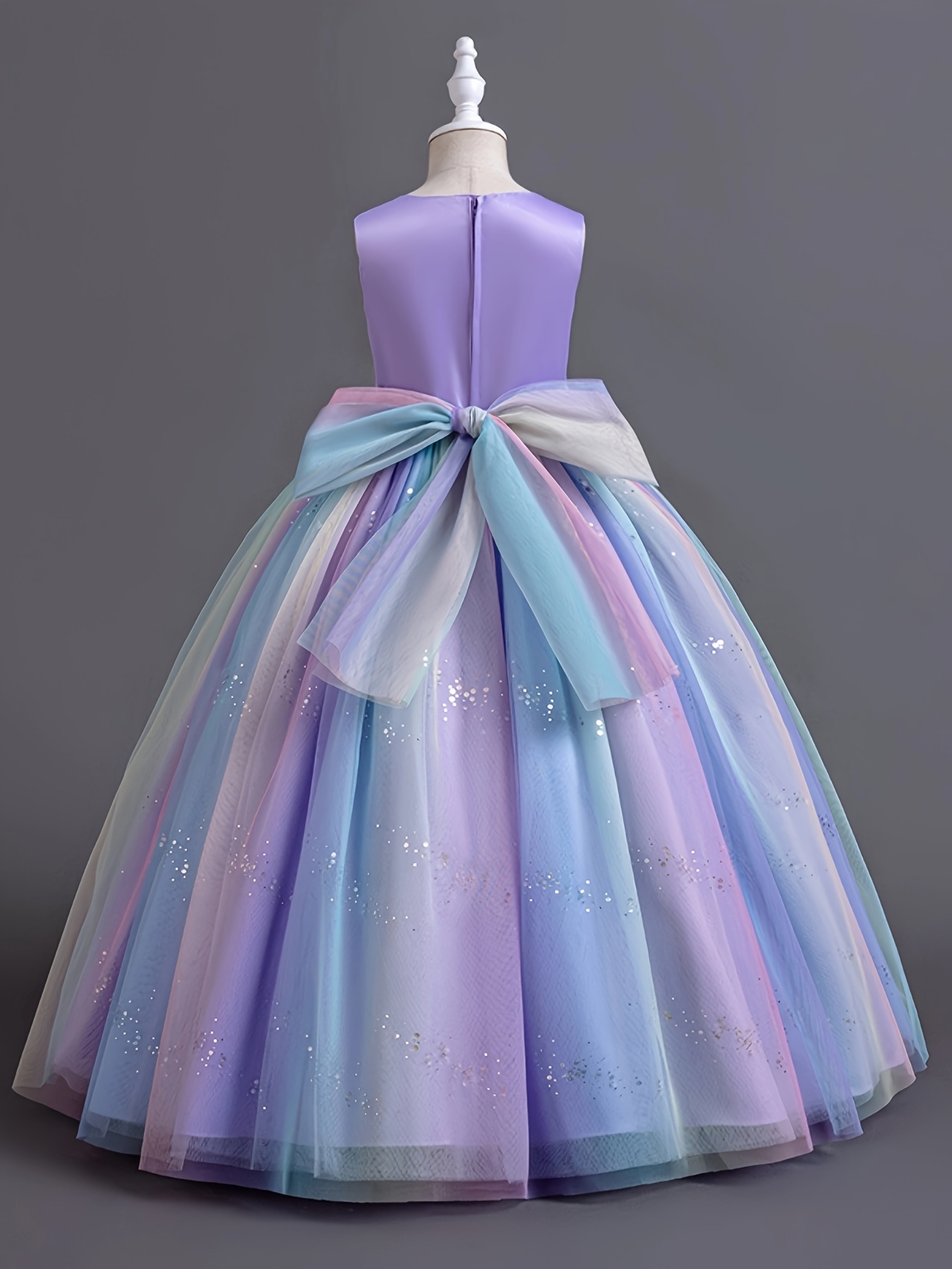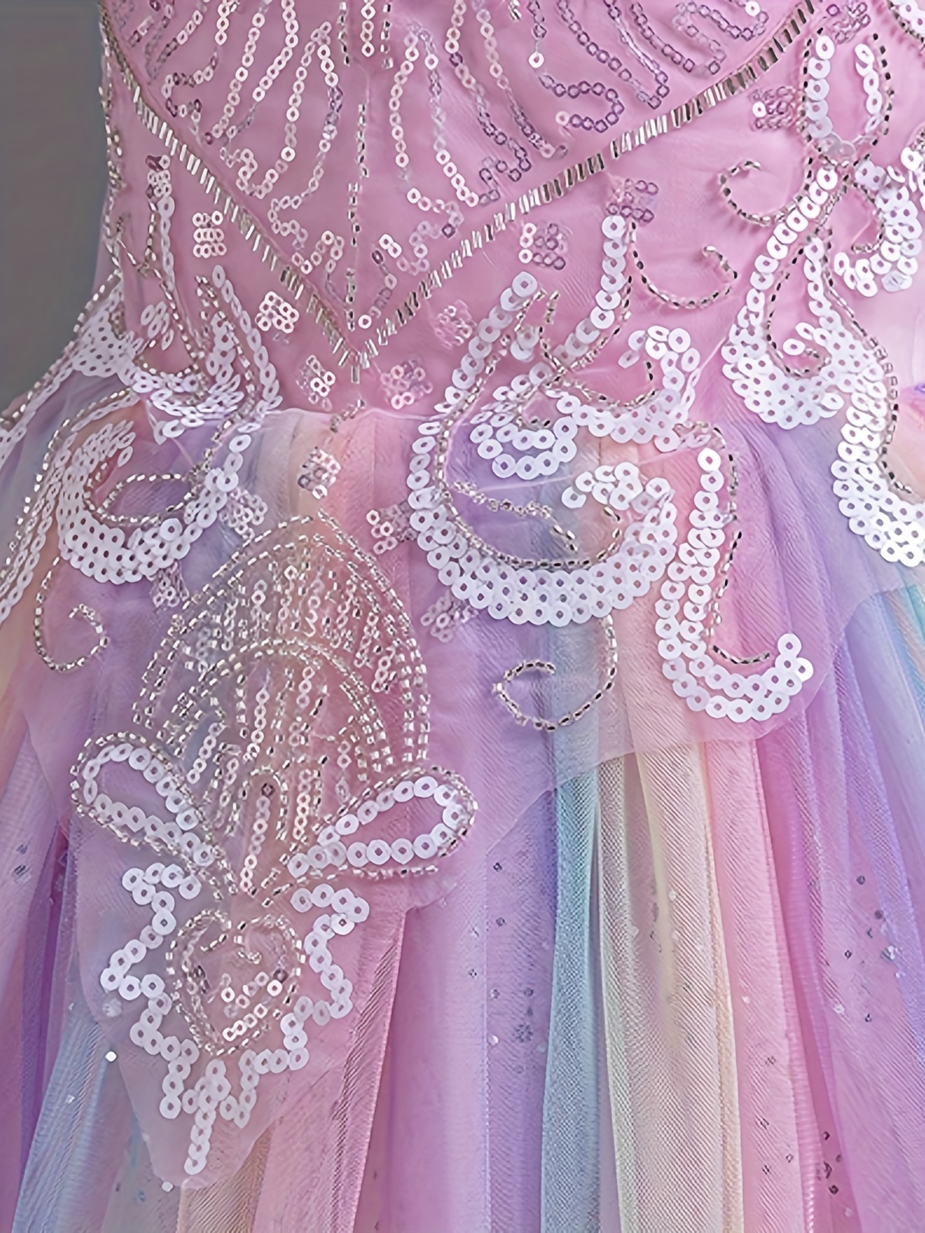 Girls' Rainbow Princess Dress with Lace and Tulle,