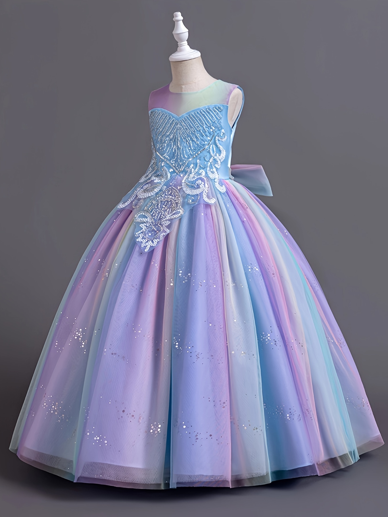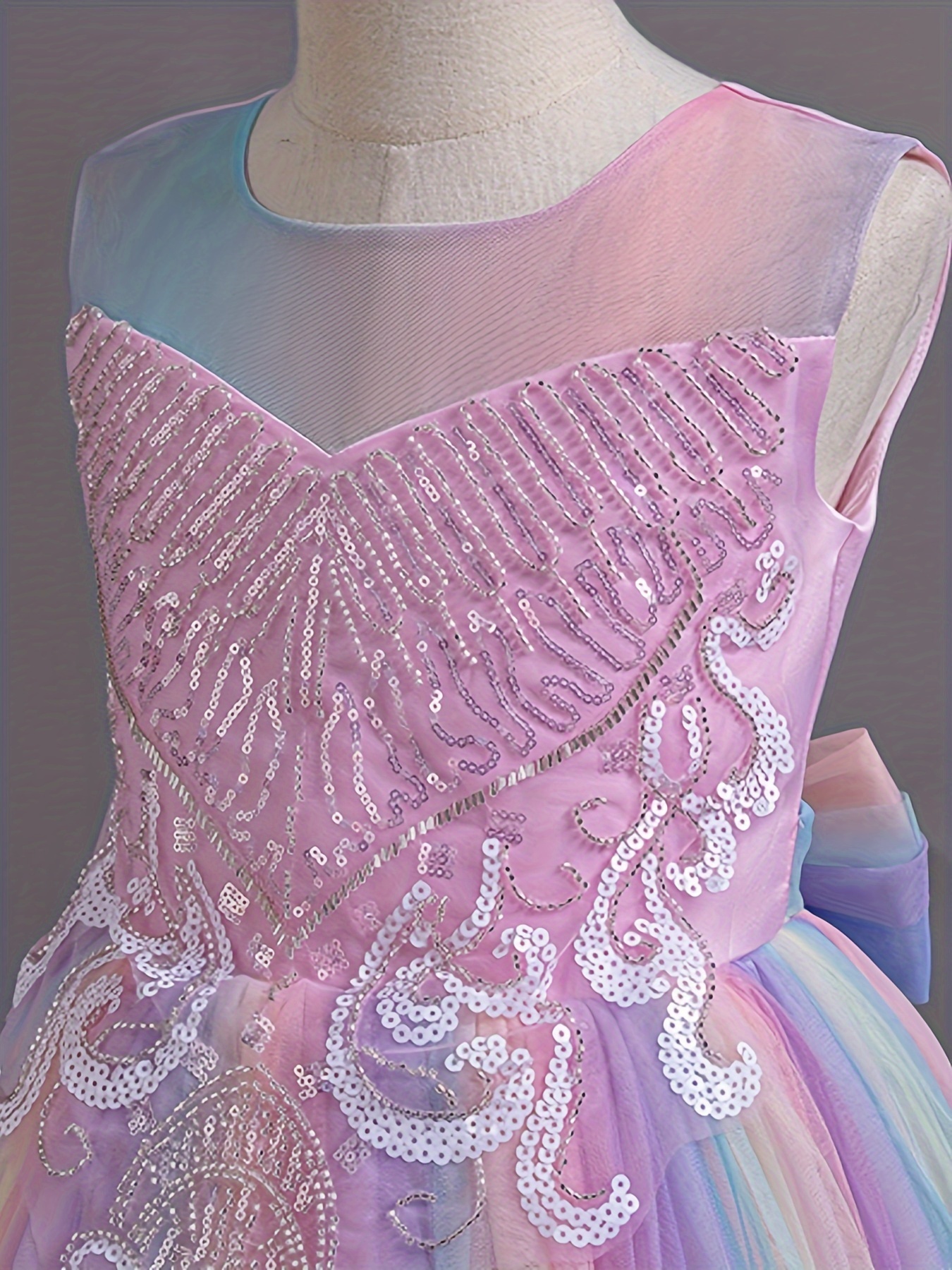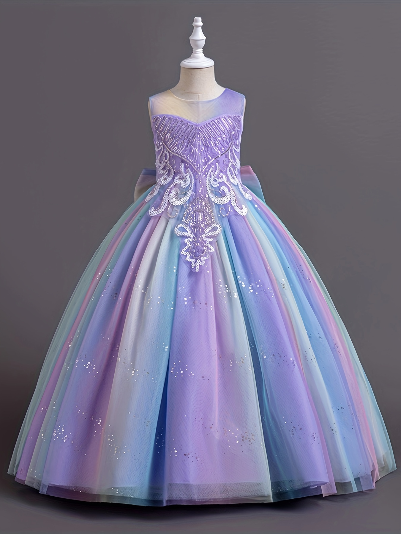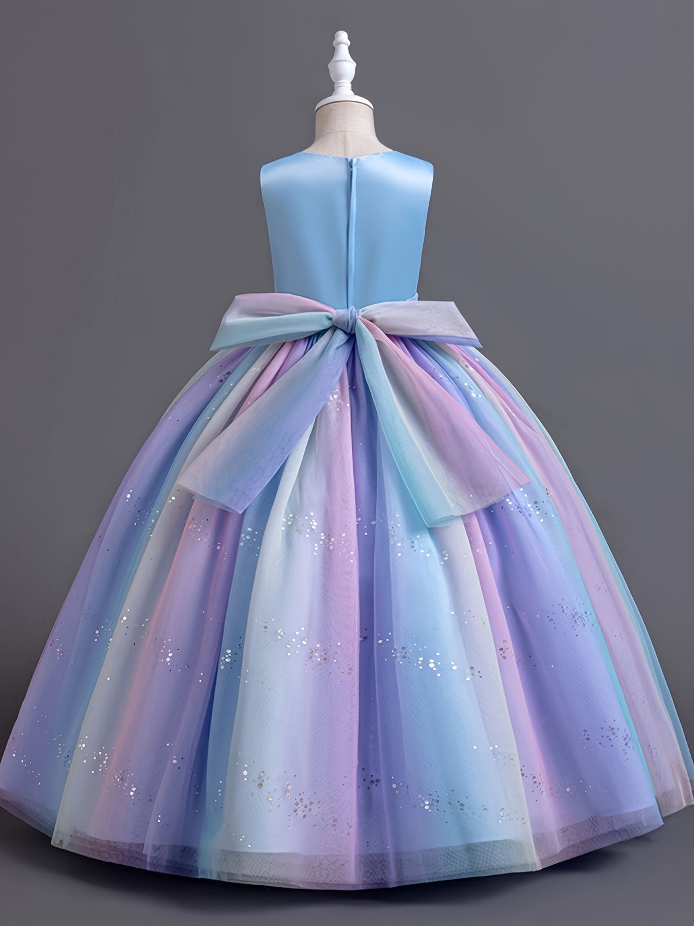 Girls' Rainbow Princess Dress with Lace and Tulle,
